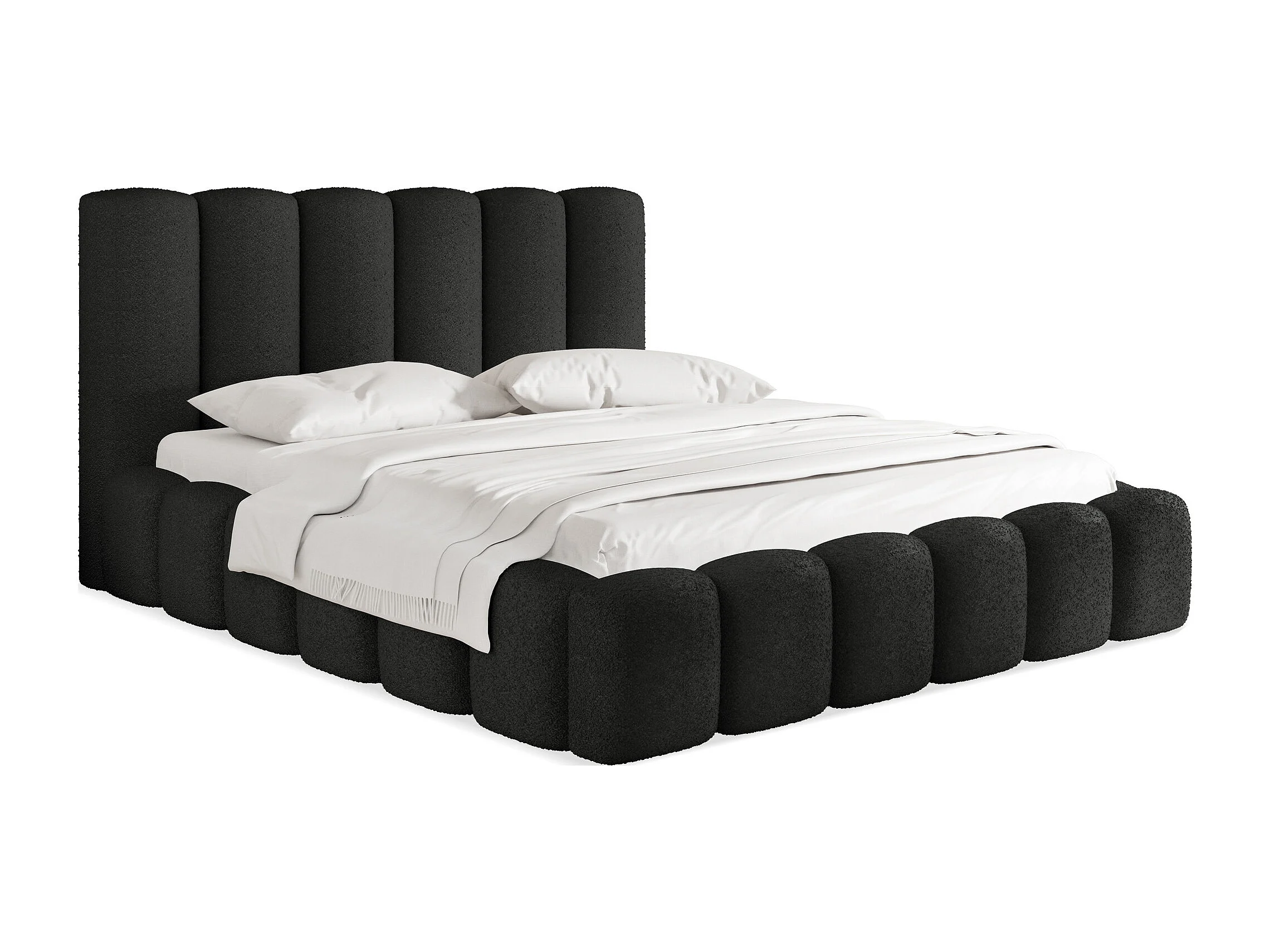 Polsterbett 180x200 – Bettkasten mit Lattenrost – Boucle oder Samt Schwarz – Hohes Kopfteil – Bettgestell ohne Matratze – Serenity – Schwarz