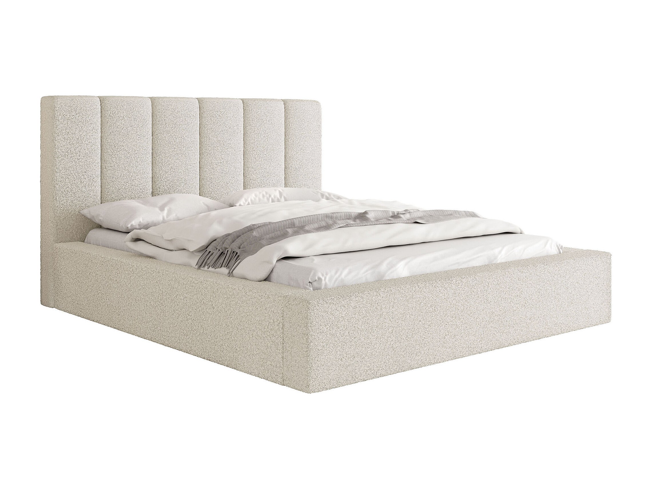 Polsterbett 180x200 – Bettkasten mit Lattenrost – Boucle oder Samt Weiß, Ecru – Hohes Kopfteil – Bettgestell ohne Matratze – Amira – Modernes Doppelbett – Creme