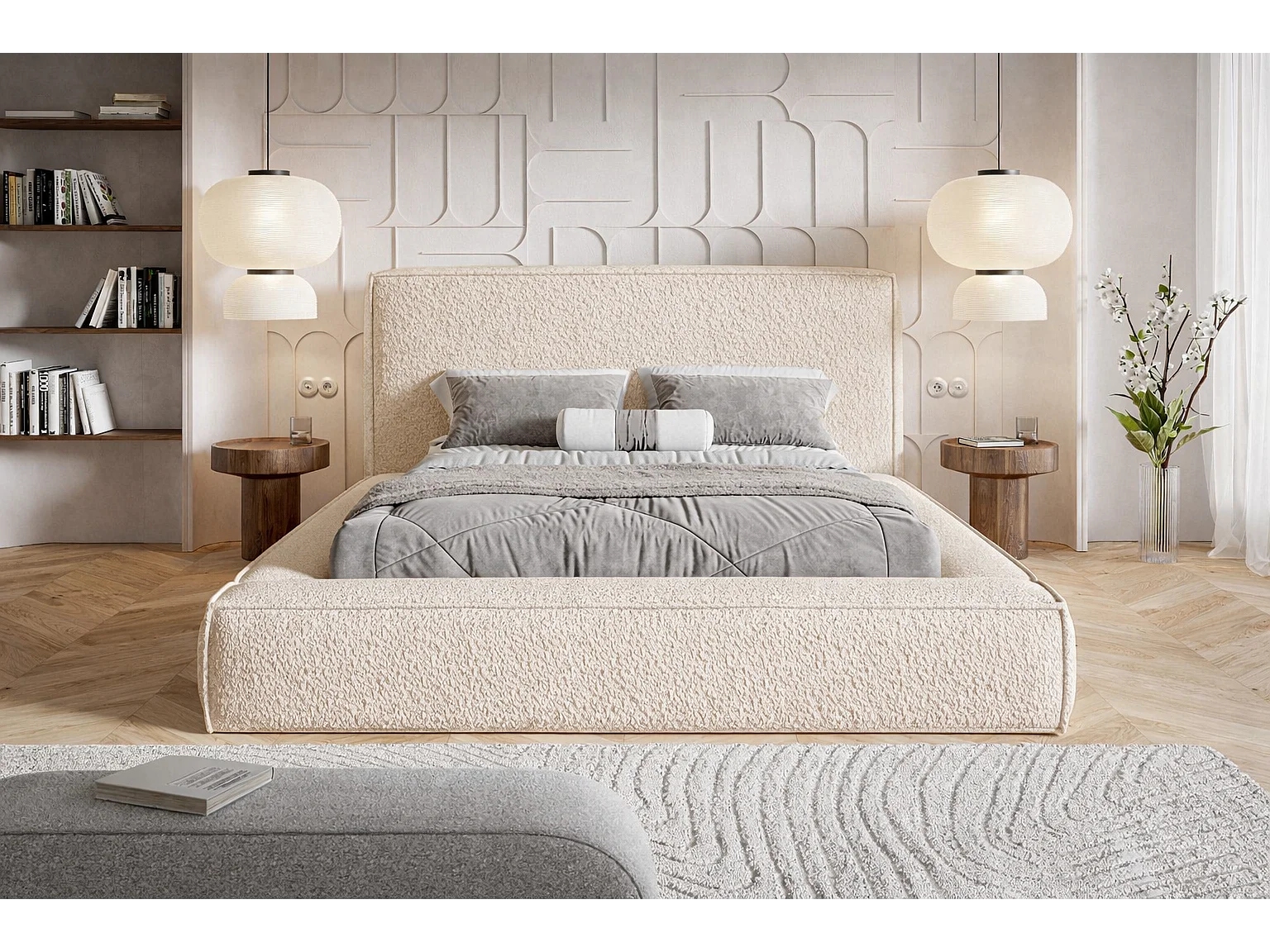 Polsterbett 180x200 Karano mit Bettkasten - Lattenrost, Samtstoff - Beige (Catch Me 2)