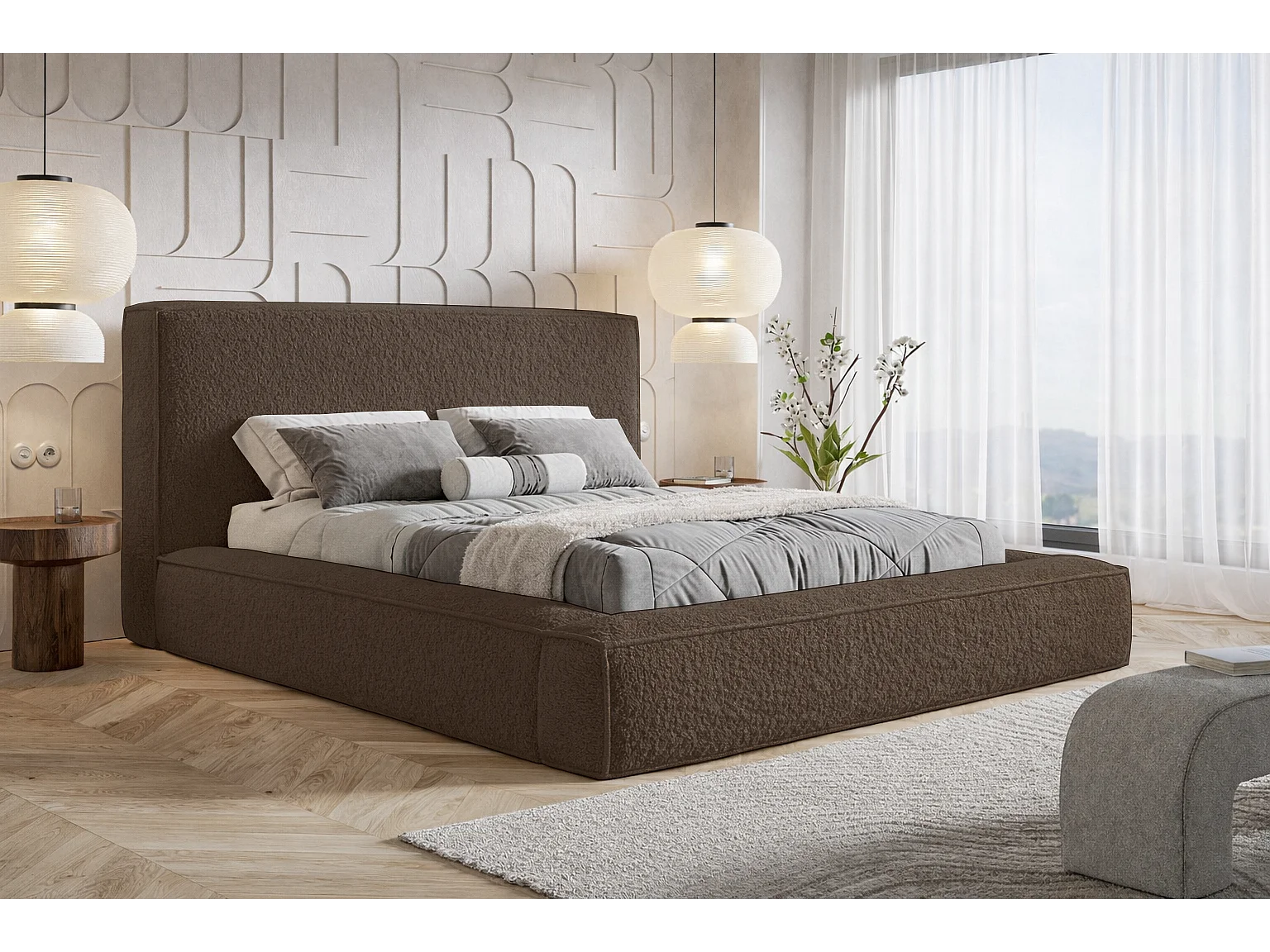 Polsterbett 180x200 Karano mit Bettkasten - Lattenrost, Samtstoff - Braun (Catch Me 6)