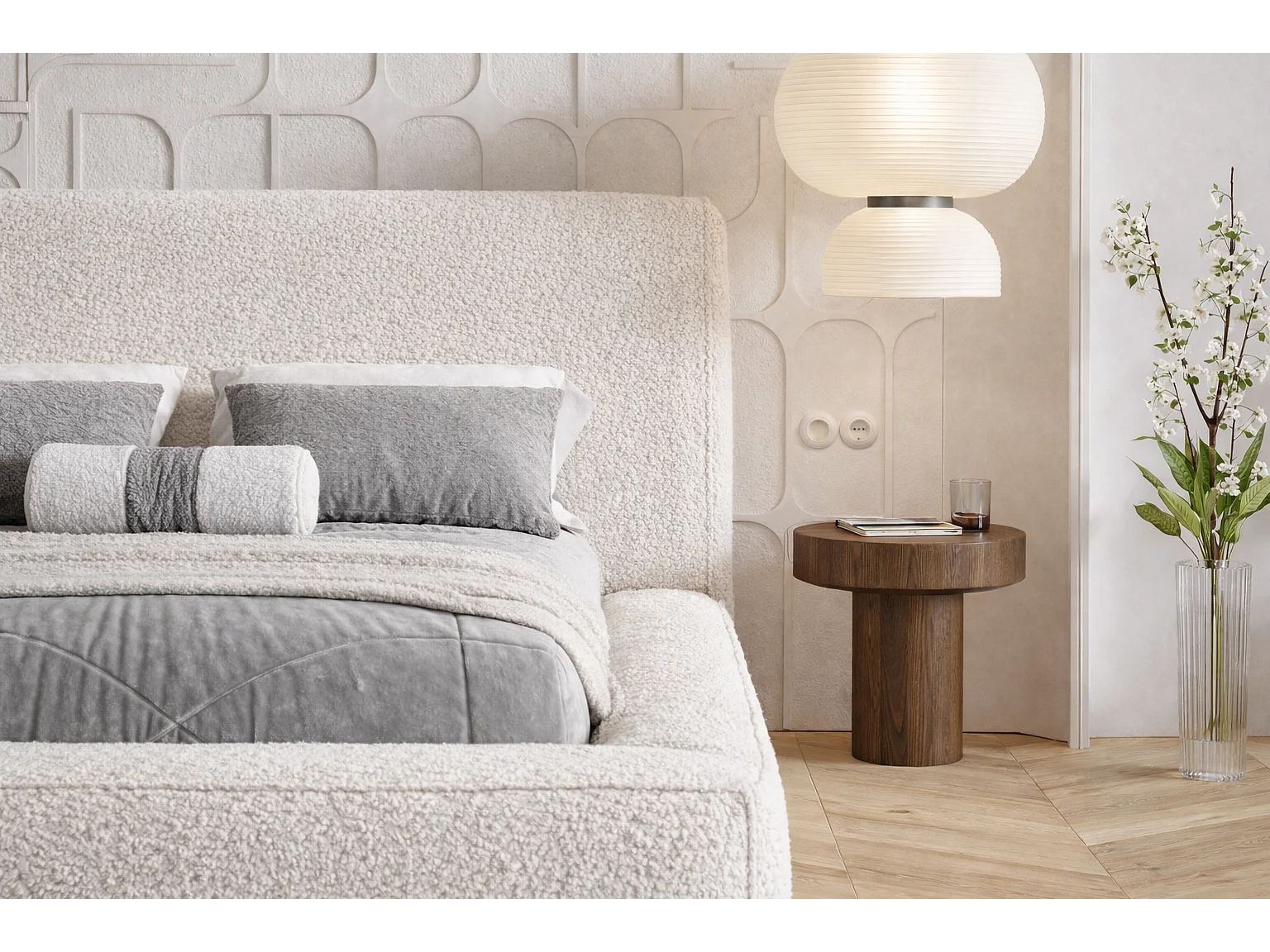 Polsterbett 180x200 Karano mit Bettkasten - Lattenrost, Samtstoff - Creme (Catch Me 1)