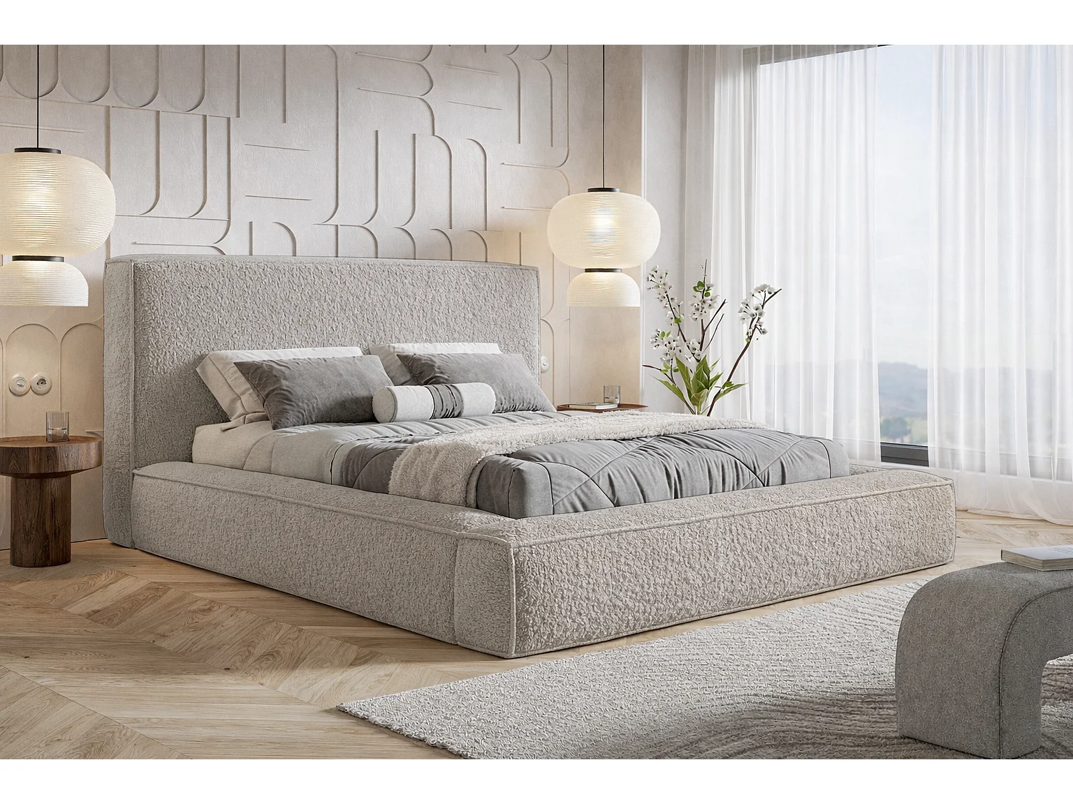 Polsterbett 180x200 Karano mit Bettkasten - Lattenrost, Samtstoff - Hellgrau (Catch Me 24)