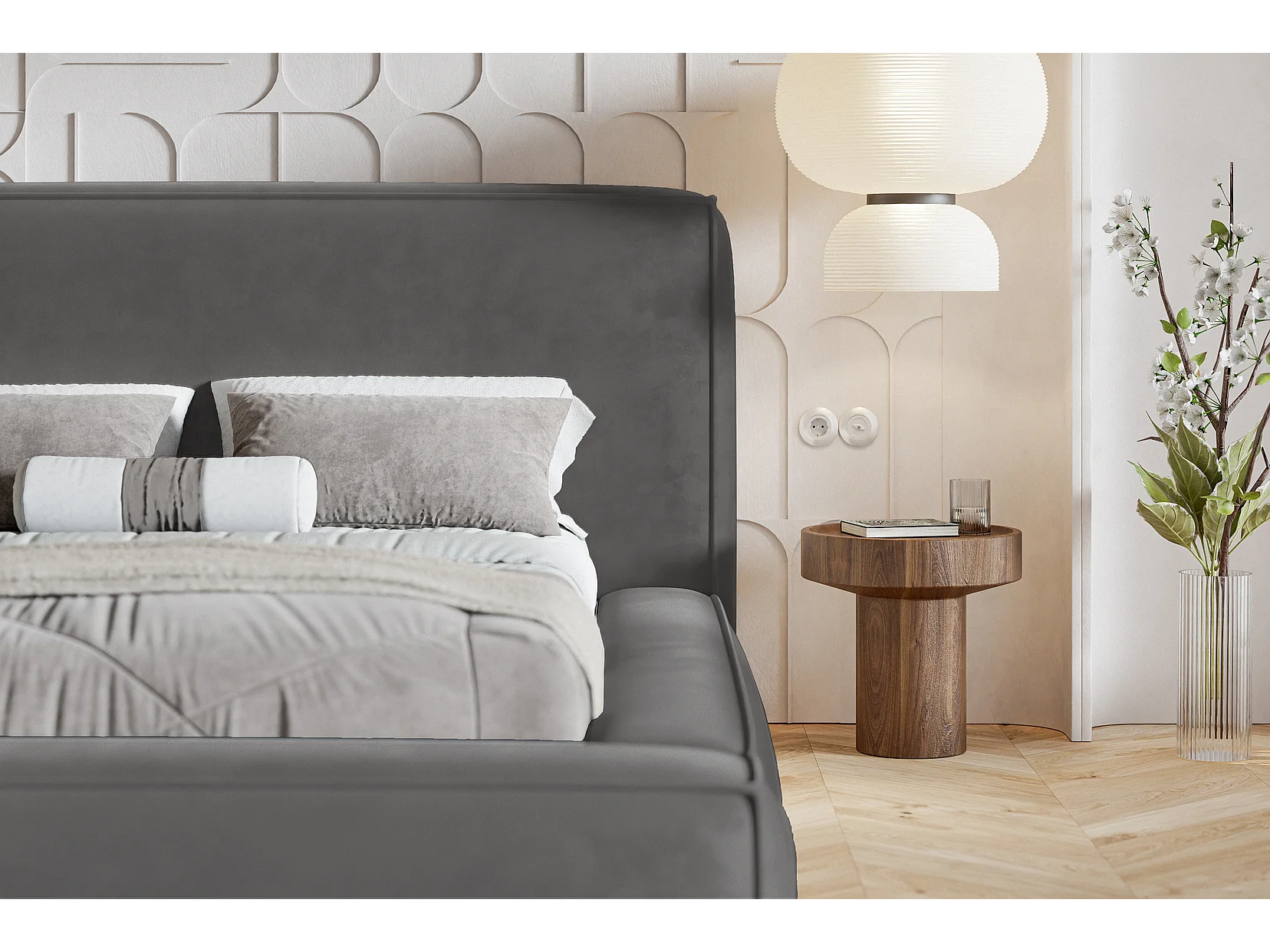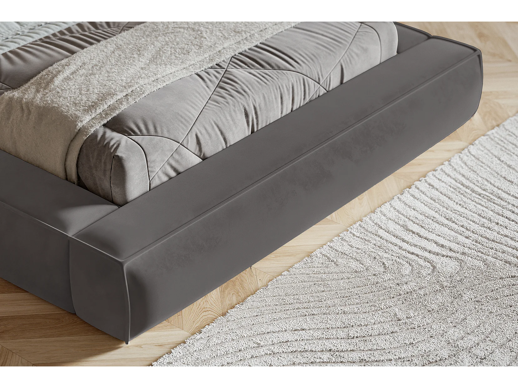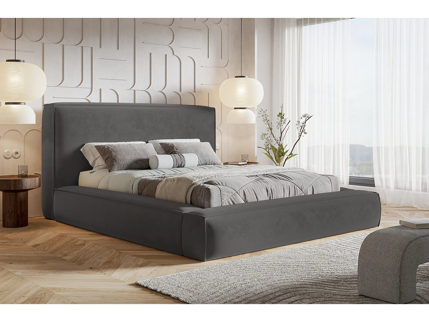 Polsterbett 180x200 Karano mit Lattenrost - Bettkasten, Samtstoff - Dunkelgrau (Amor Velvet 4321)