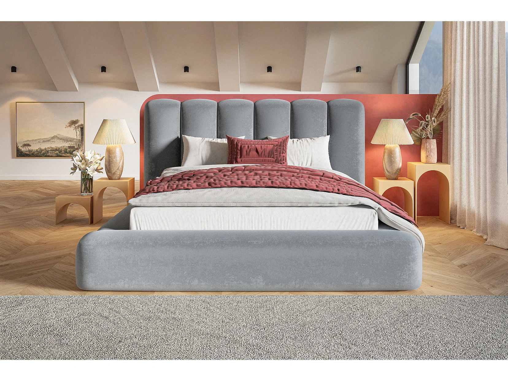 Polsterbett 180x200 Lumaro - Bettkasten, hochwertigem Schaumstoff, Lattenrost - Hellgrau (Amor Velvet 4318)