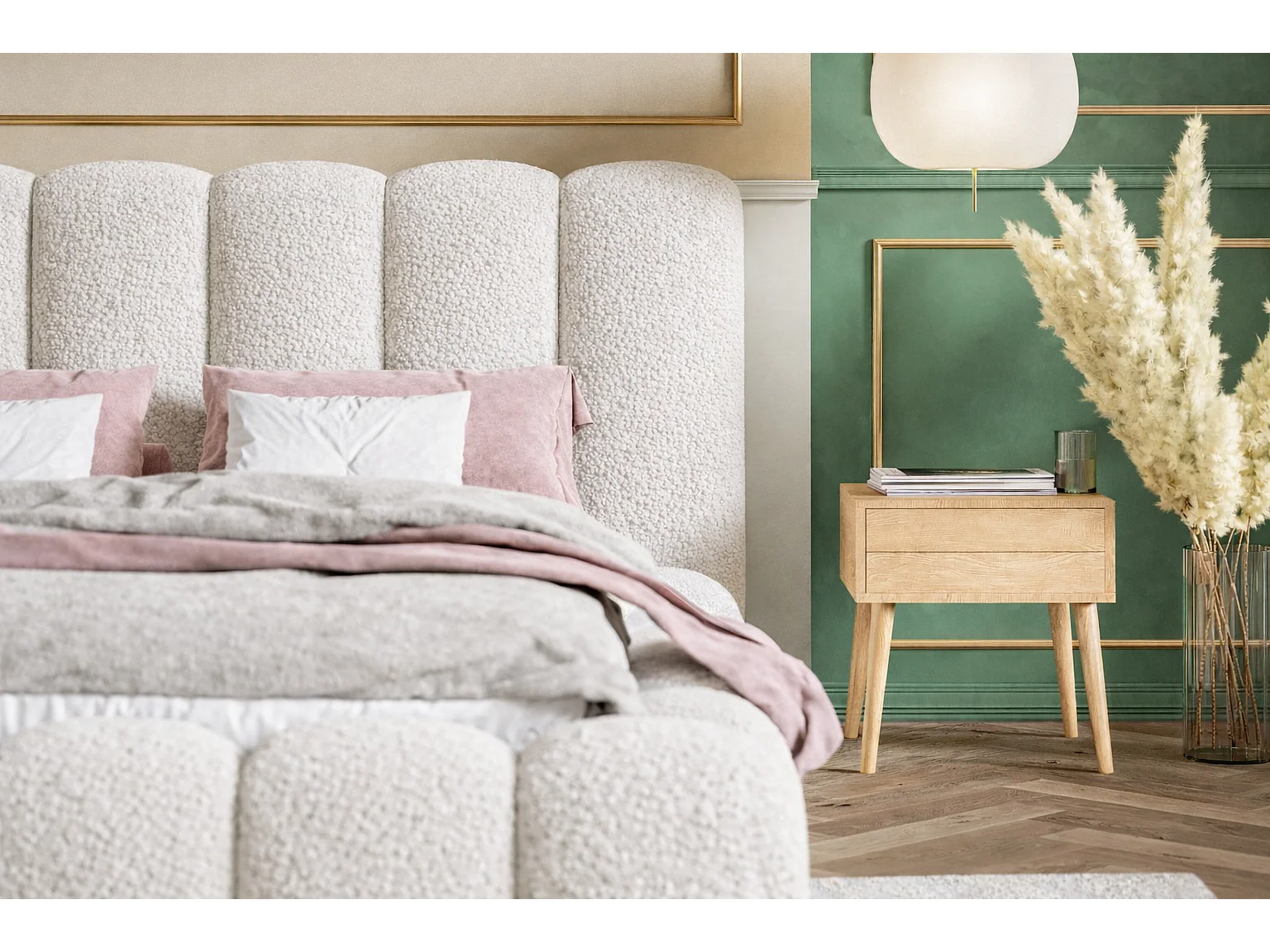 Polsterbett 180x200 Madeno mit Bettkasten - hochwertigem Schaumstoff, Metall-Lattenrost - Bouclé, Creme (Catch me 1)