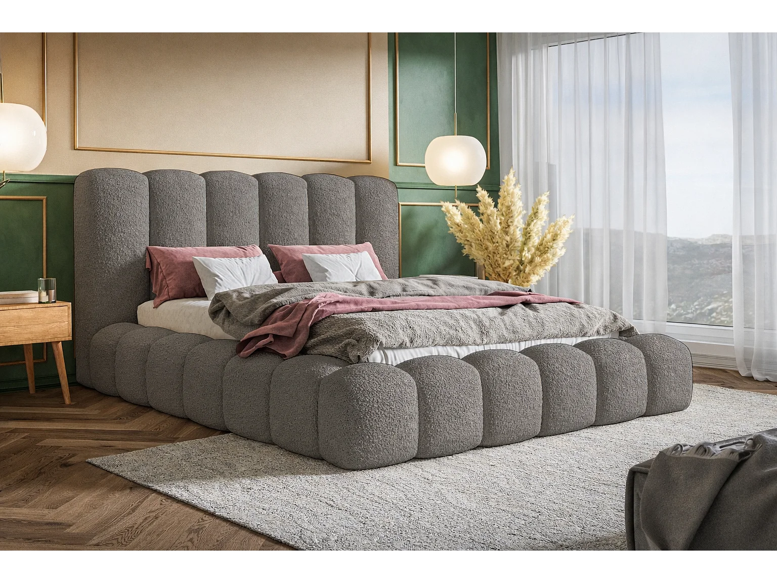 Polsterbett 180x200 Madeno mit Bettkasten - hochwertigem Schaumstoff, Metall-Lattenrost - Bouclé, Grau (Catch me 25)