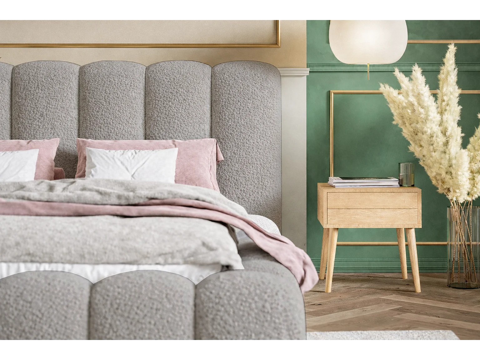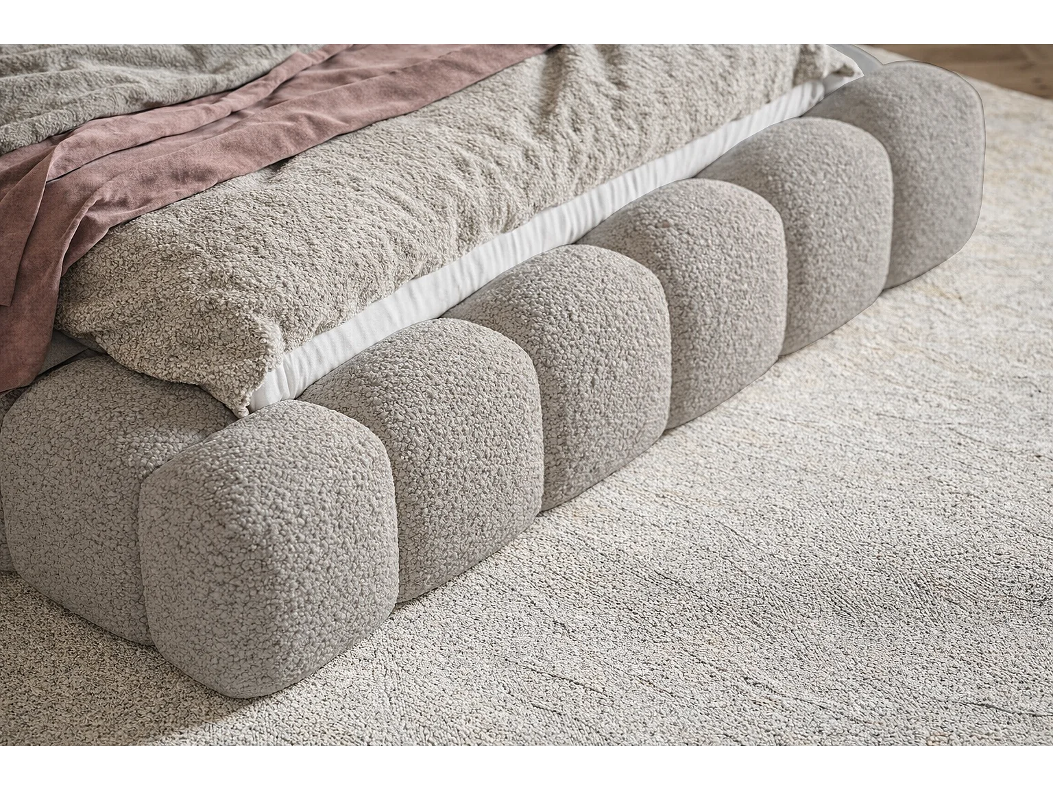 Polsterbett 180x200 Madeno mit Bettkasten - hochwertigem Schaumstoff, Metall-Lattenrost - Bouclé, Hellgrau (Catch me 24)