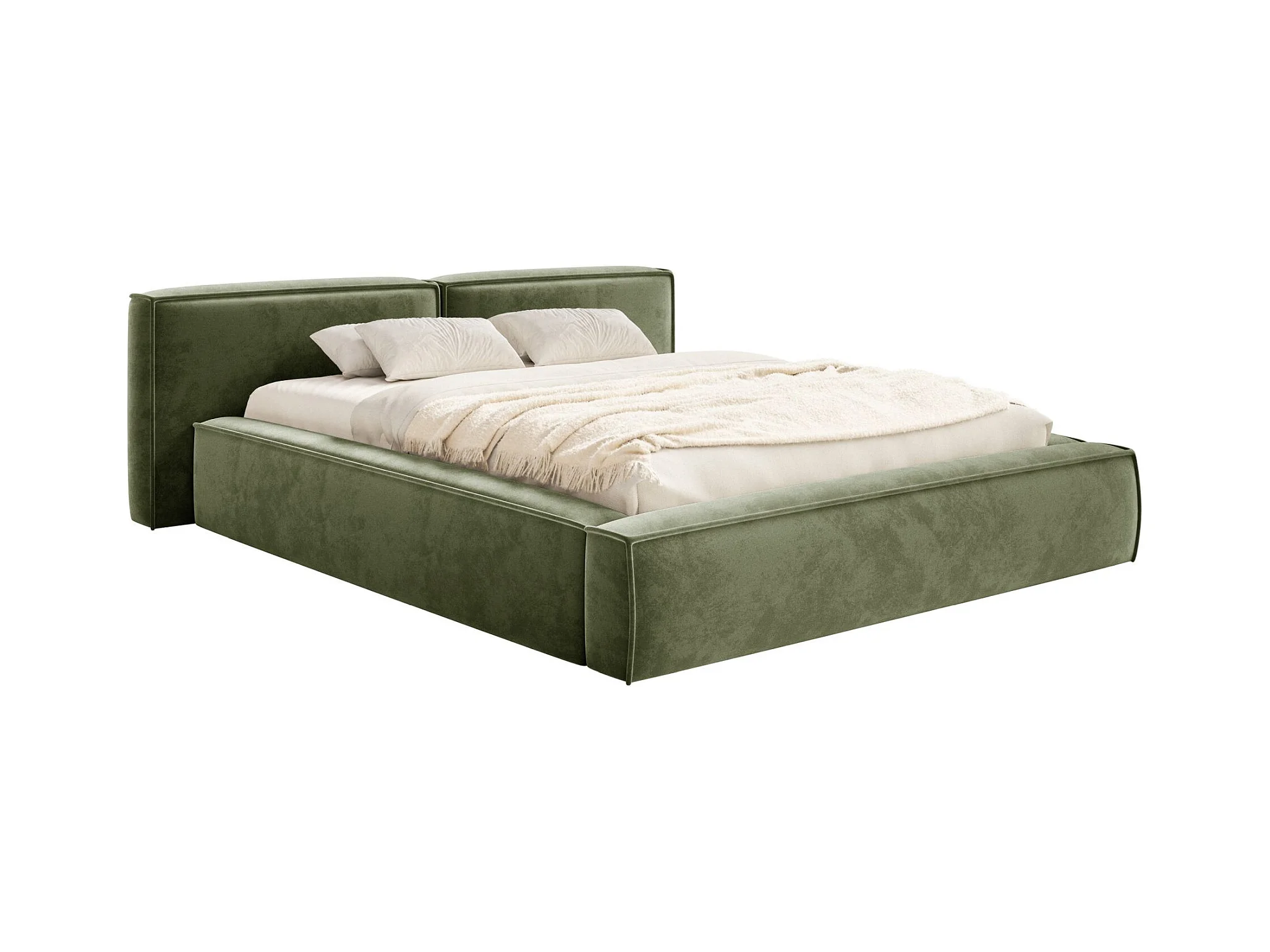 Polsterbett 180x200 mit Bettkasten – Lattenrost – Velours – olivgrün – TILVES LOW