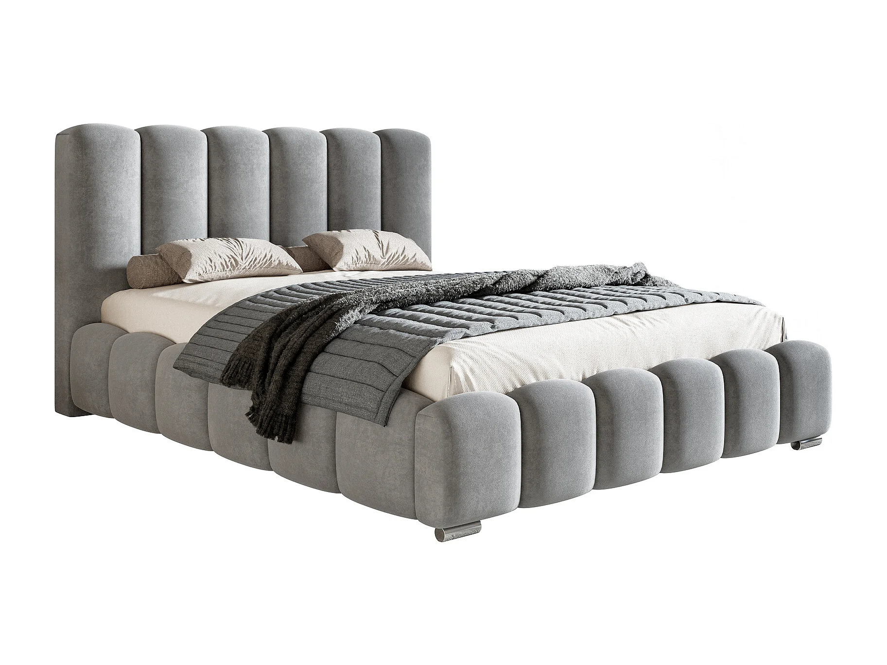 Polsterbett 180x200 Pearl, Doppelbett, Bettkasten, Metall-Lattenrost - Velvet Grau (Amor Velvet 4318)