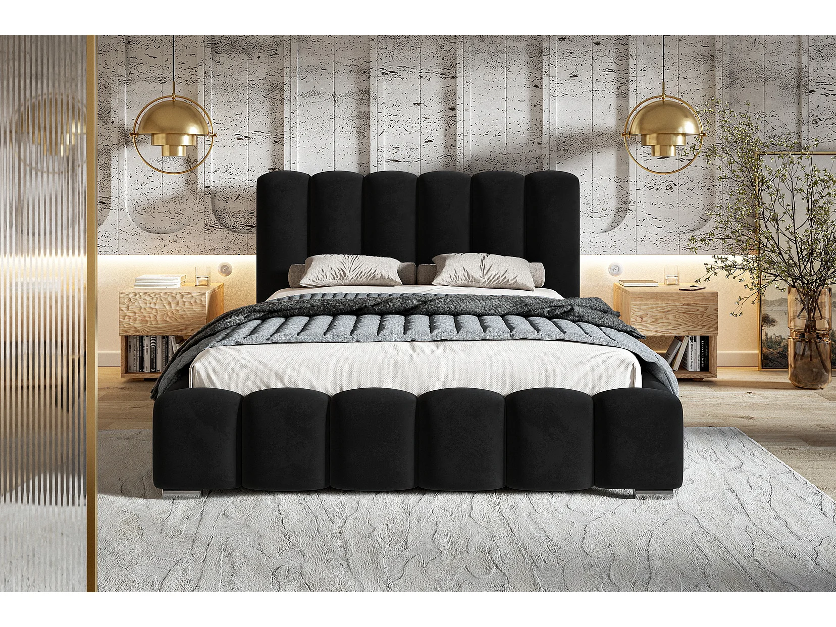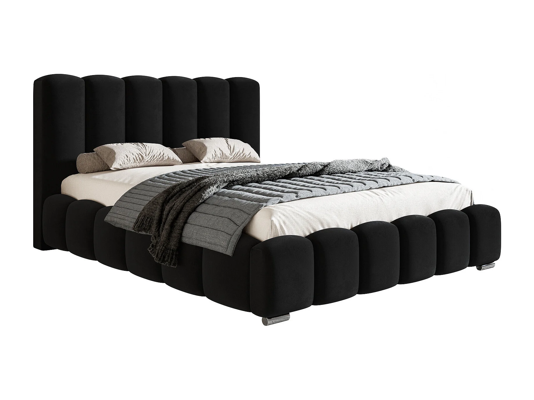 Polsterbett 180x200 Pearl, Doppelbett, Bettkasten, Metall-Lattenrost - Velvet Schwarz (Amor Velvet 4322)