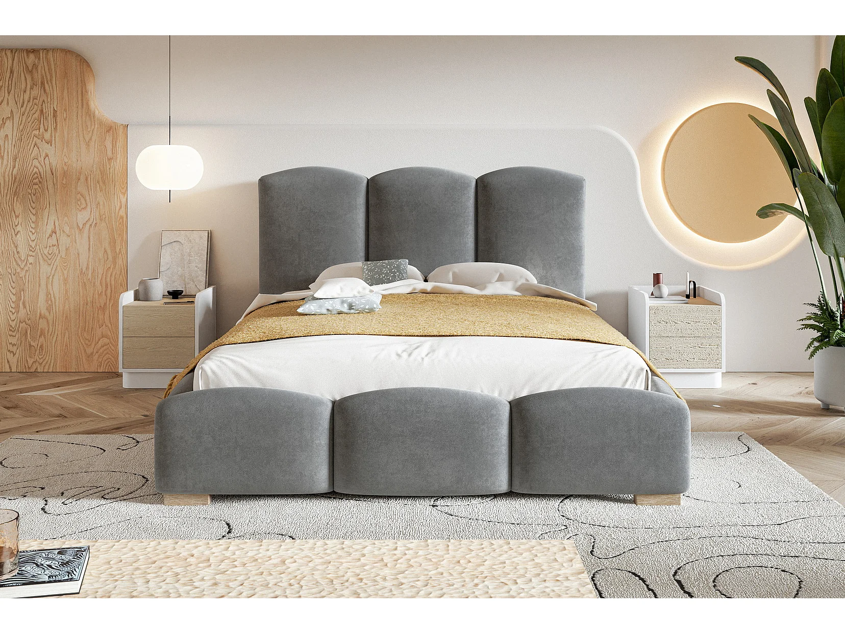Polsterbett 180x200 Roma mit Bettkasten, Samtstoff, Metall-Lattenrost Hellgrau (Jasmine 90)