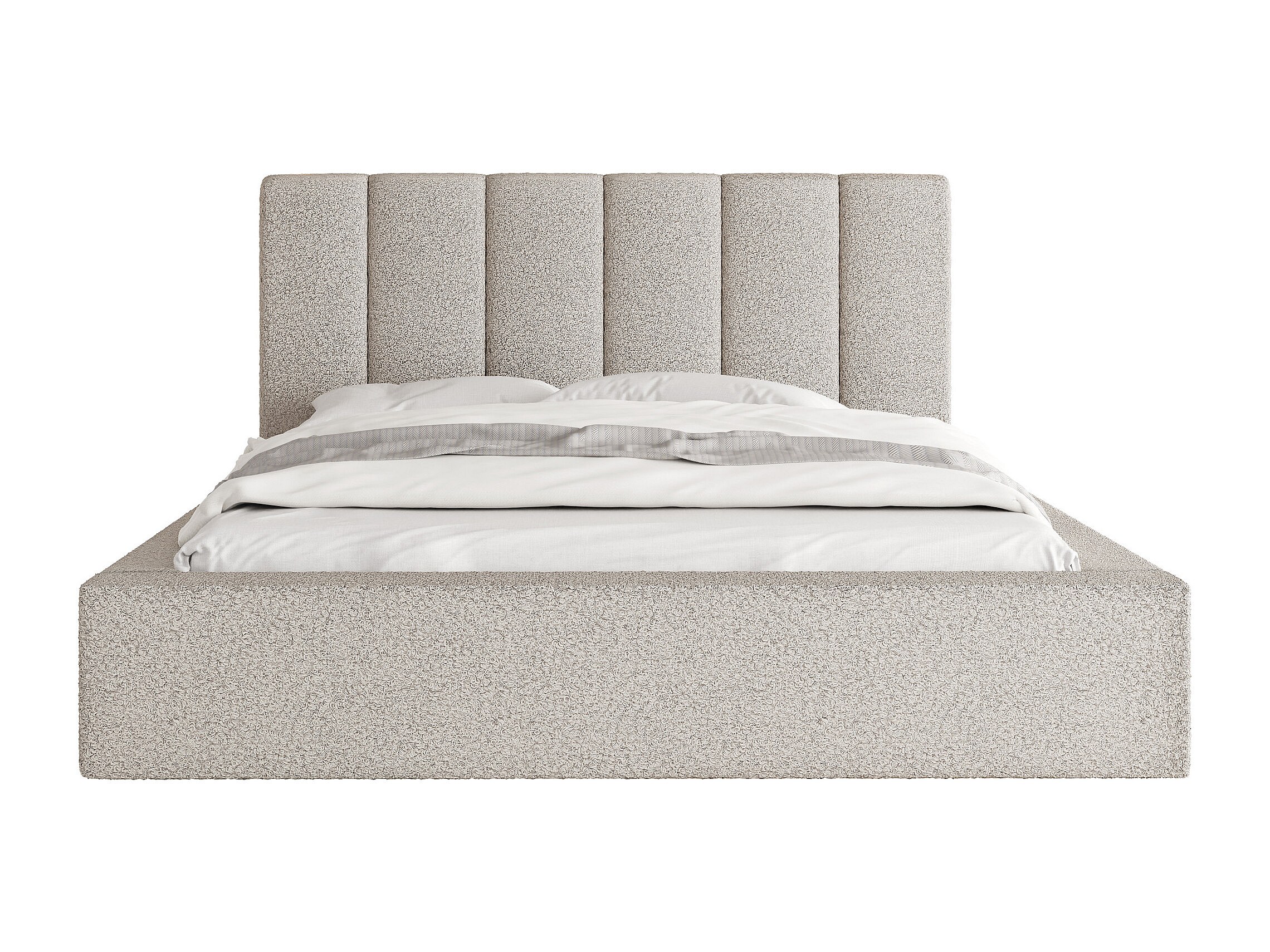 Polsterbett 200x200 – Bettkasten mit Lattenrost – Boucle oder Samt Creme – Hohes Kopfteil – Bettgestell ohne Matratze – Amira – Modernes Doppelbett – Beige
