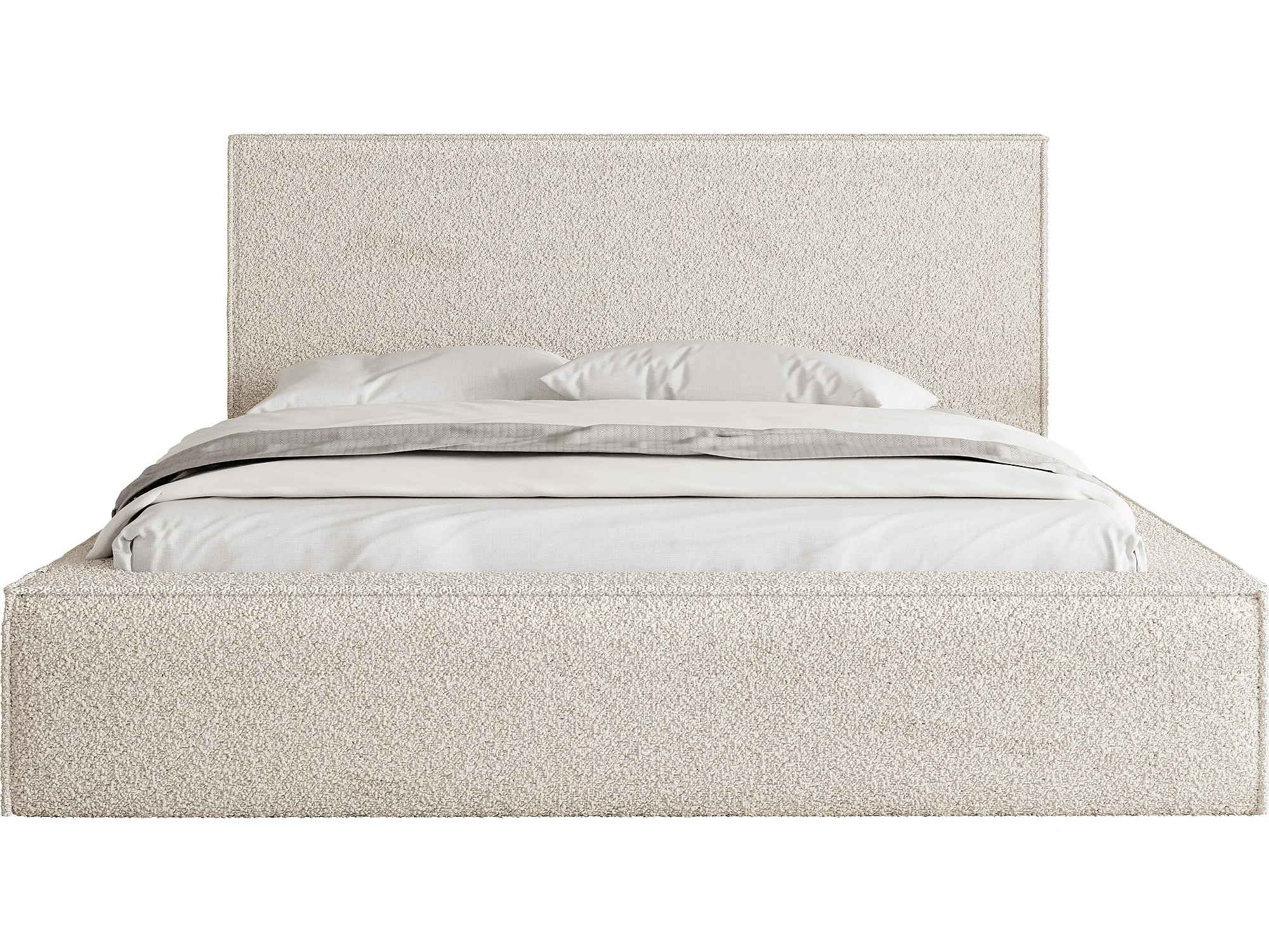 Polsterbett 200x200 – Bettkasten mit Lattenrost – Bouclé oder Samt Creme – Hohes Kopfteil – Bettgestell ohne Matratze – Terra – Modernes Doppelbett – Beige