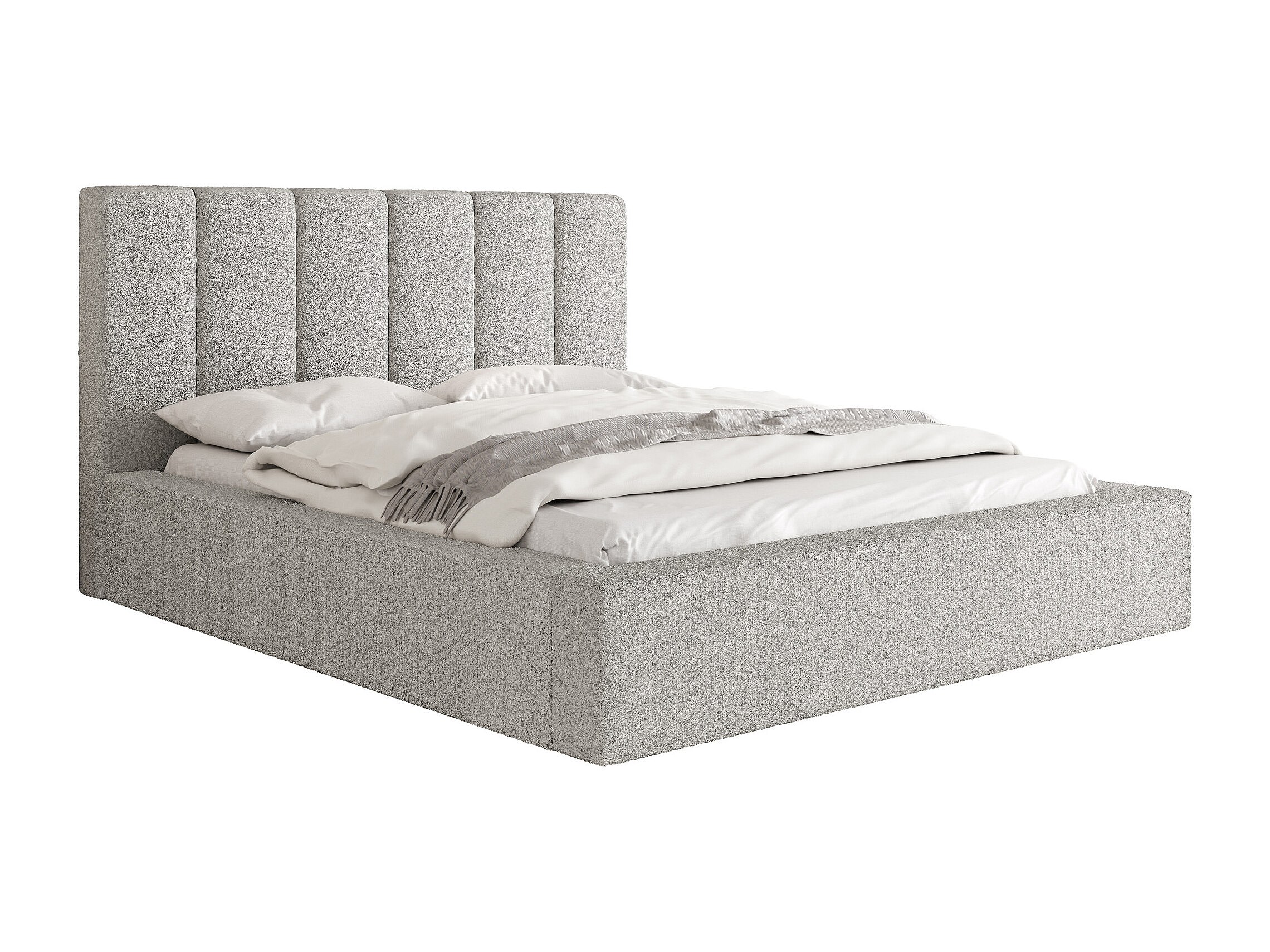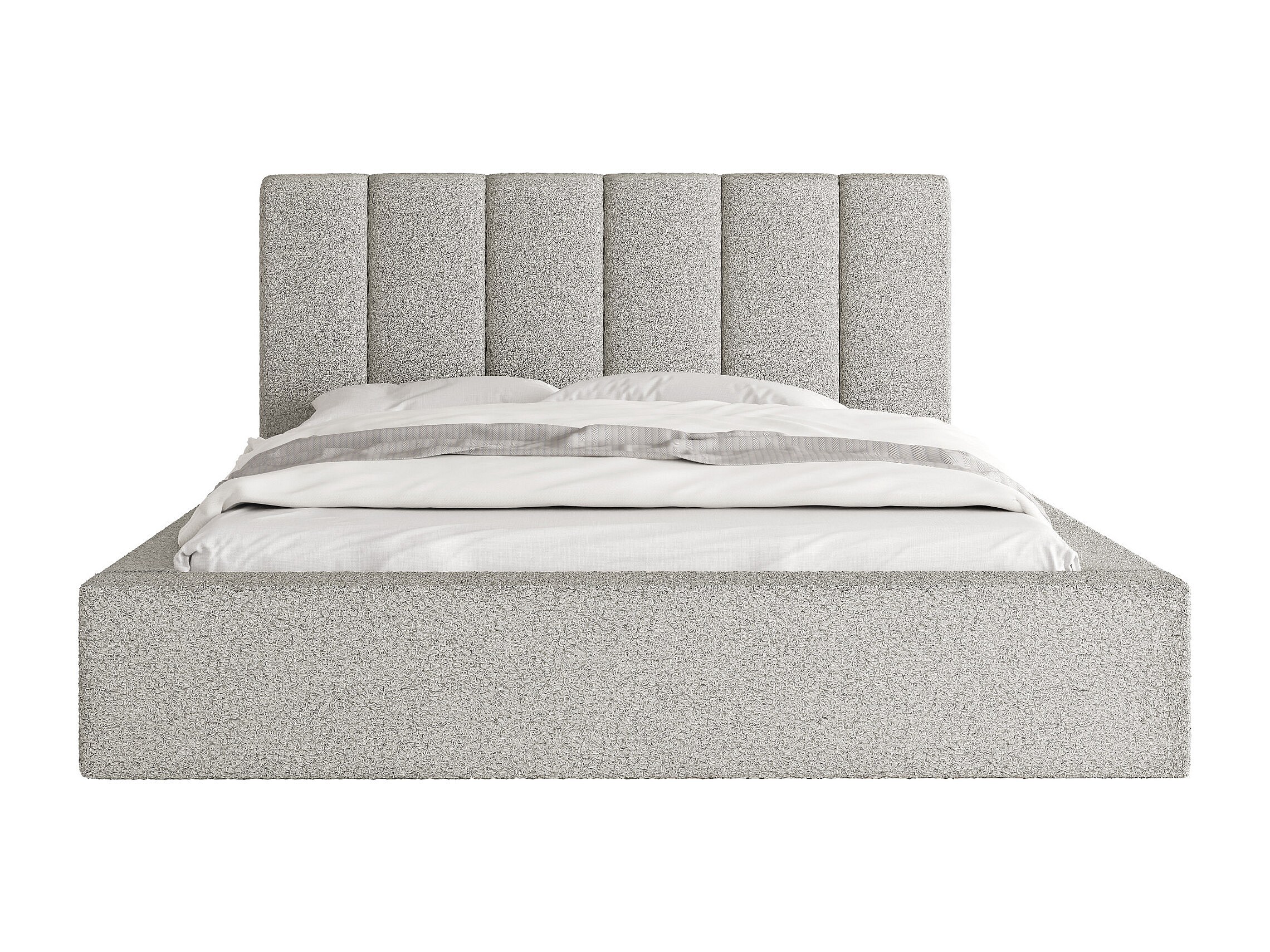 Polsterbett 200x200 – Bettkasten mit Lattenrost – Boucle oder Samt – Hohes Kopfteil – Bettgestell ohne Matratze – Amira – Modernes Doppelbett – Grau