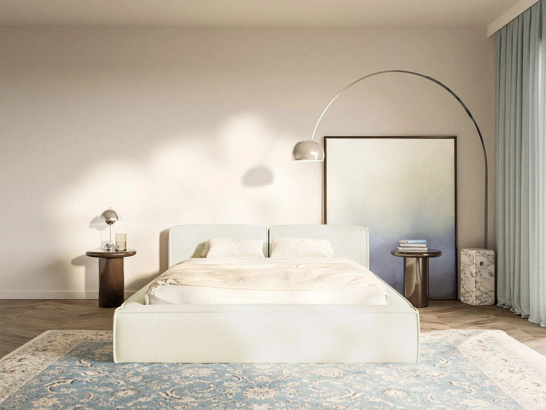 Polsterbett 200x200 mit Bettkasten – Lattenrost – Chenille – creme – TILVES SLIM