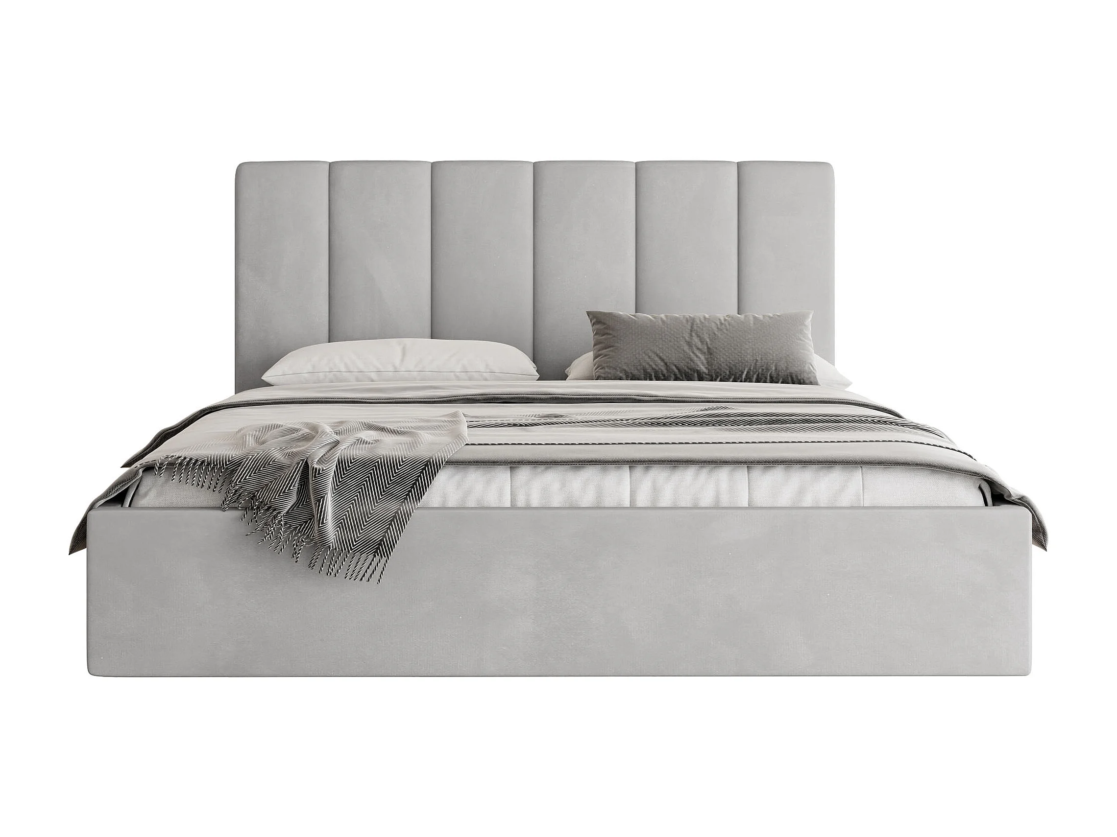 Polsterbett 200x200 mit Bettkasten, Lattenrost – hohe Kopfteil, Samt Stoff – Modernes Doppelbett mit Stauraum – Bettgestell, ohne Matratze – Amira Slim – Grau