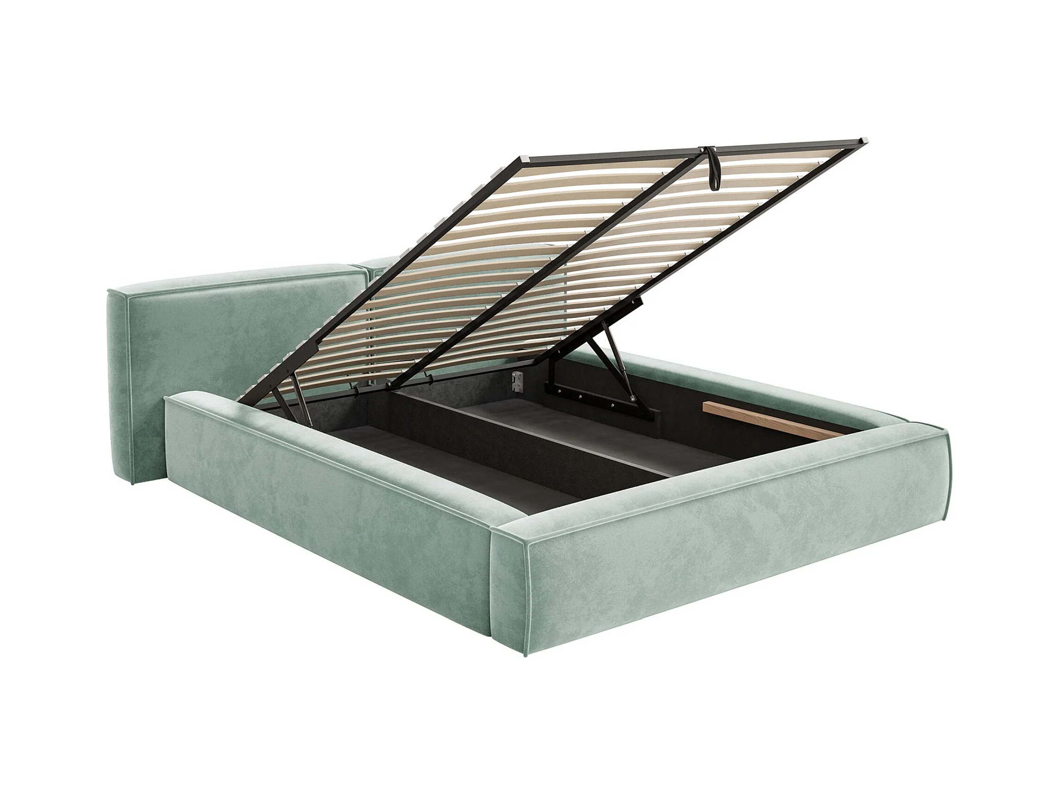 Polsterbett 200x200 mit Bettkasten – Lattenrost – Velours – salbeigrün – TILVES LOW