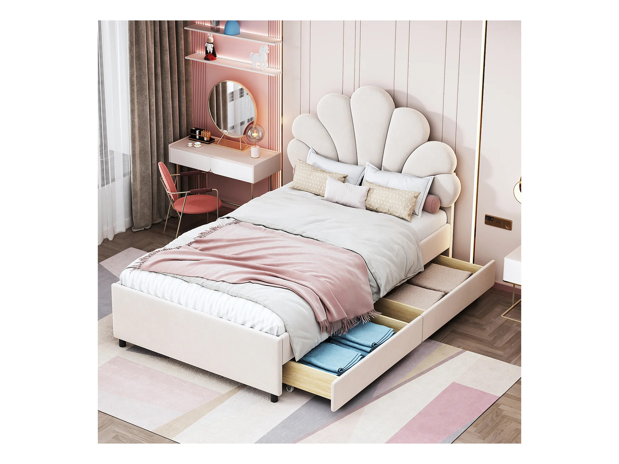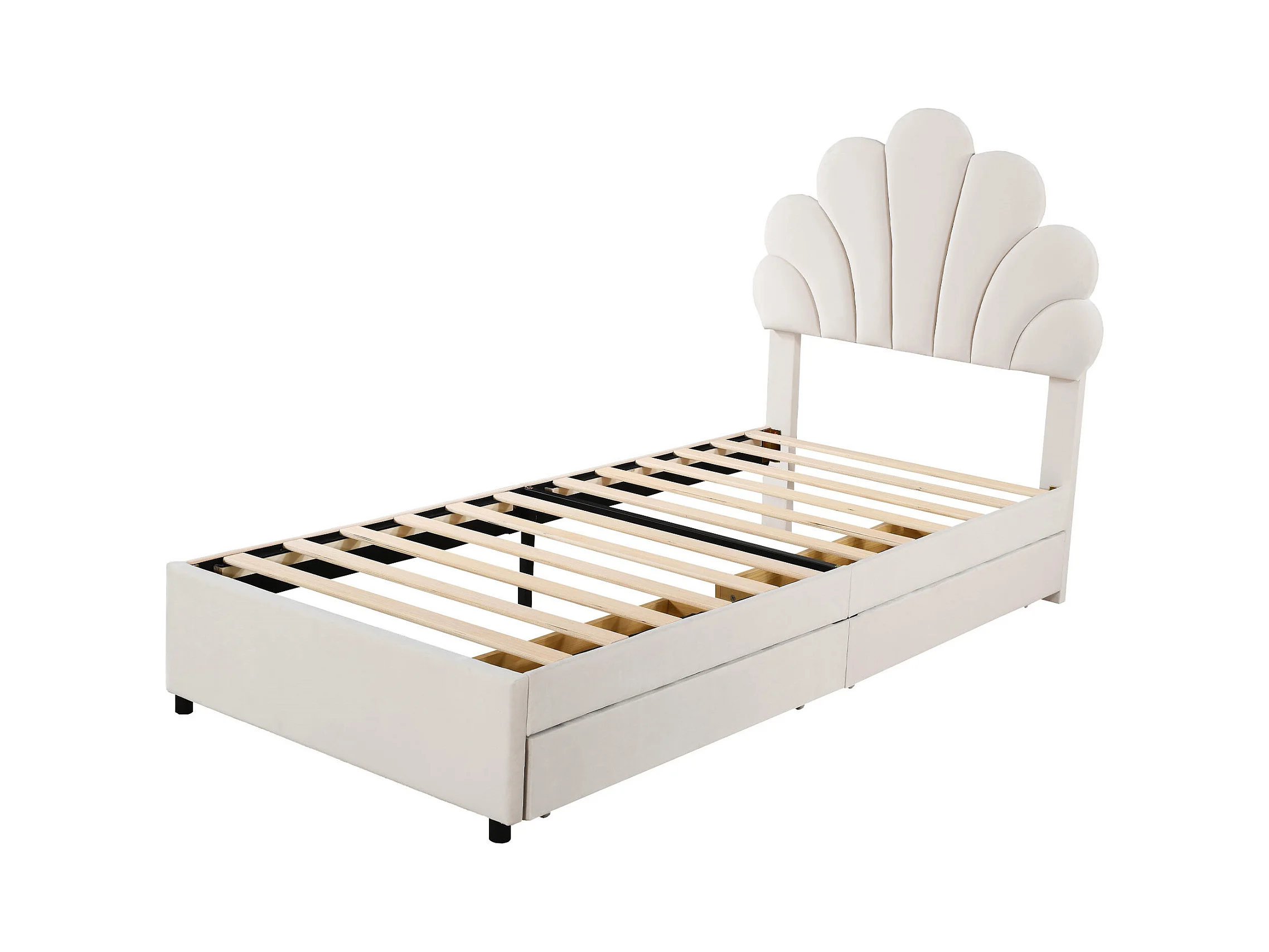 Polsterbett 90 x 200 cm, Bettrahmen mit Blumenkopfteil