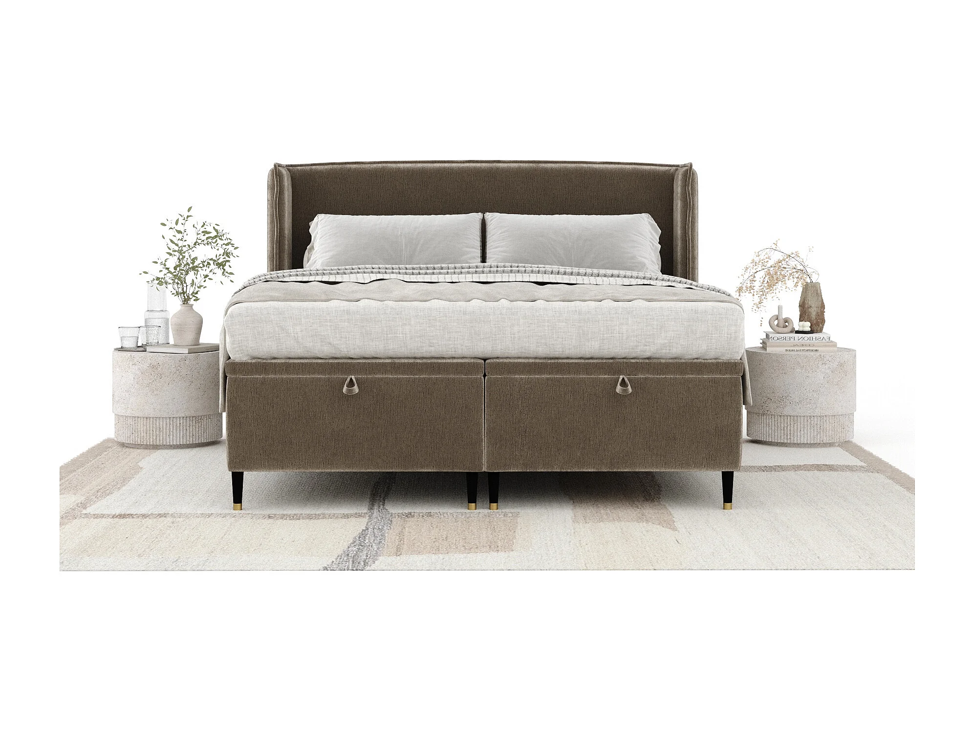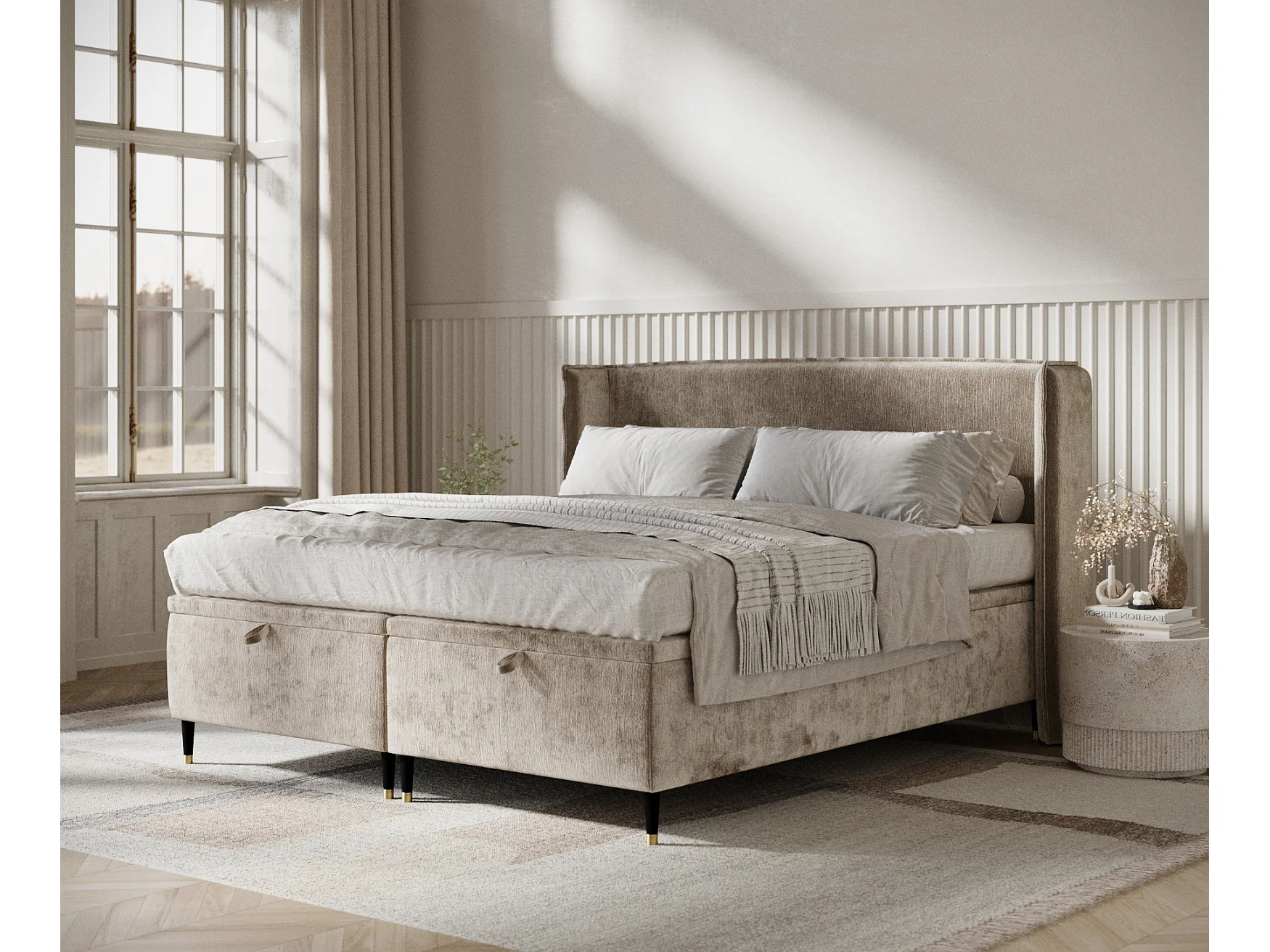 Polsterbett aus Chenille-Stoff Ritual - 160 x 200 cm - beige