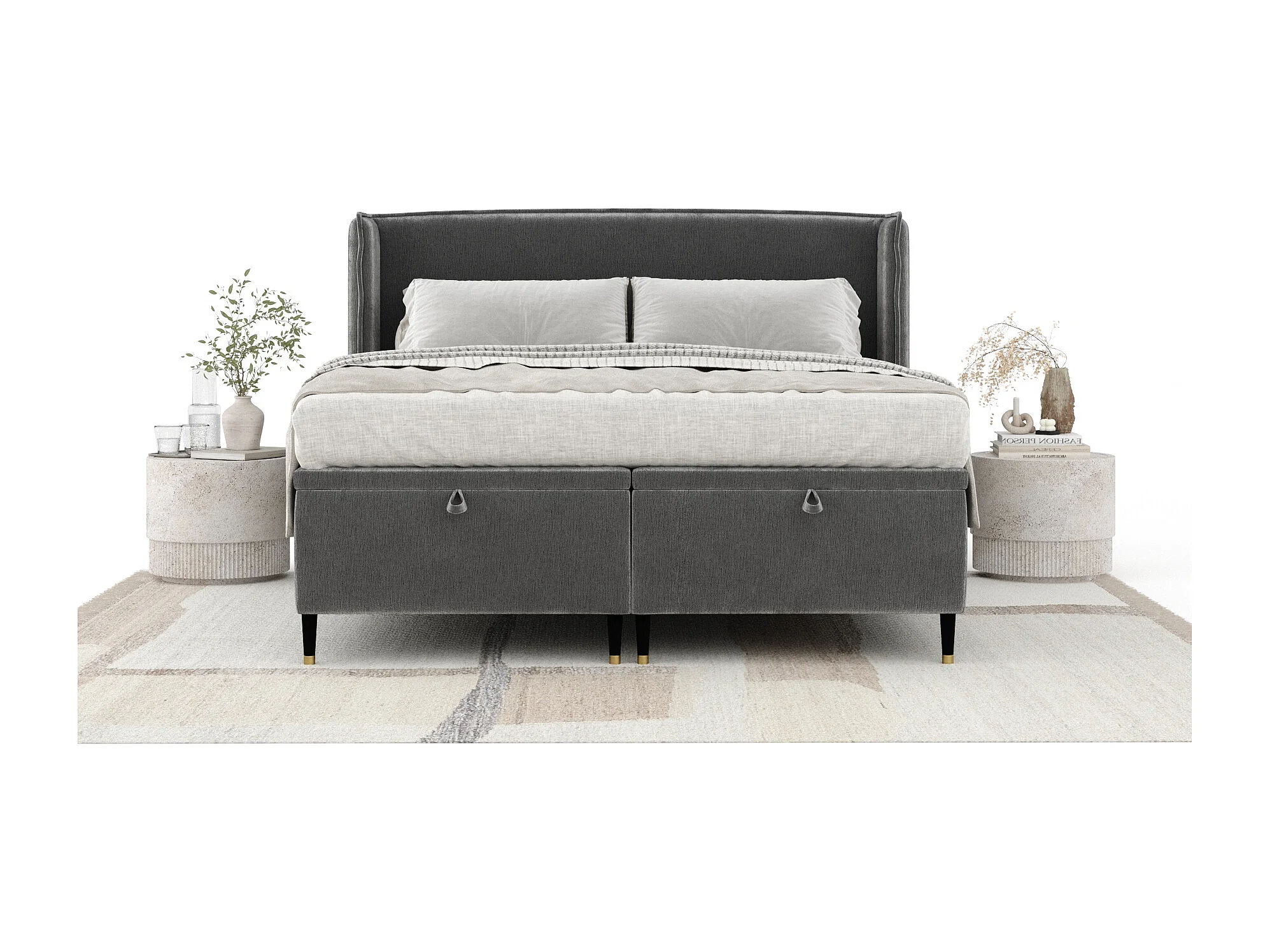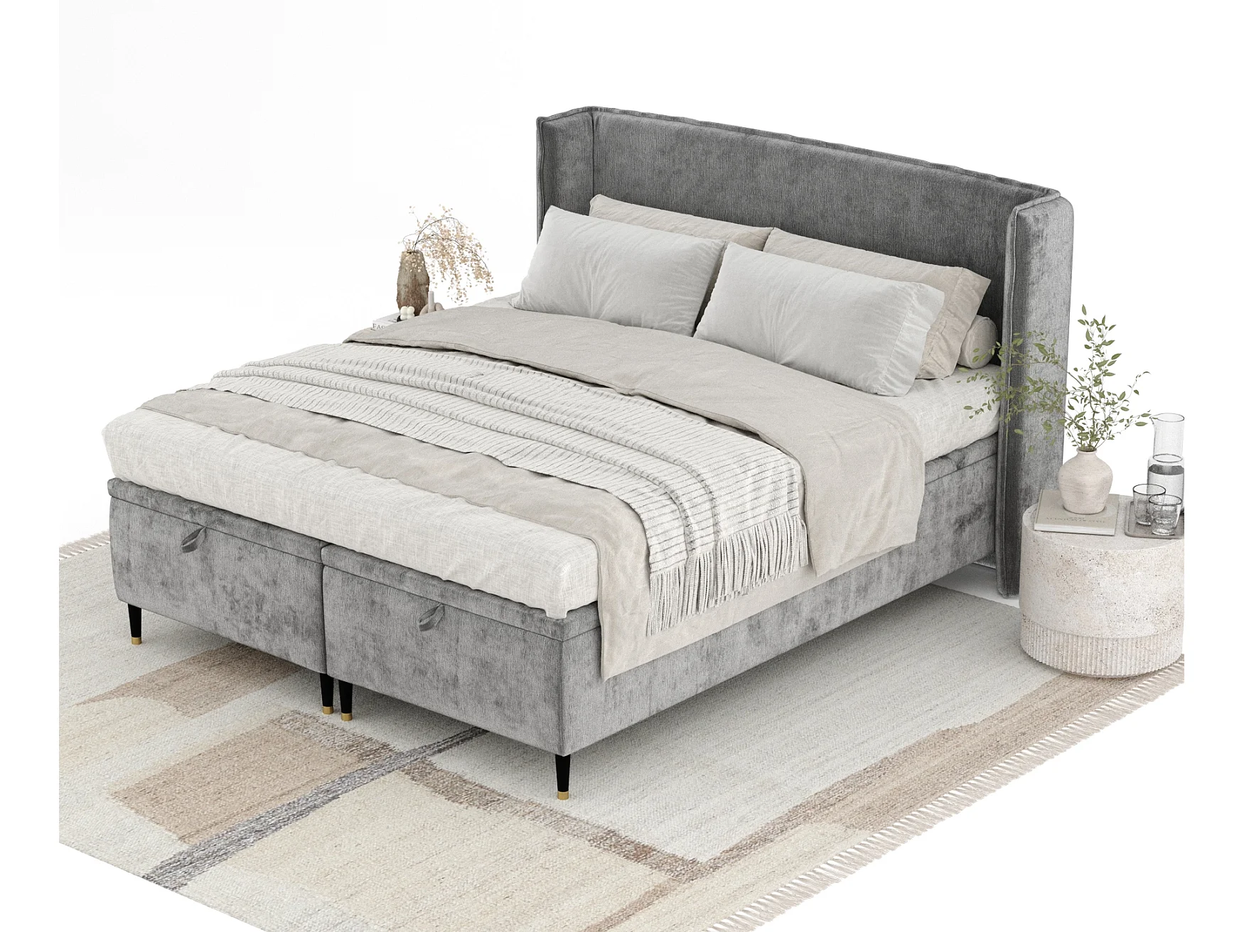 Polsterbett aus Chenille-Stoff Ritual - 160 x 200 cm - grau