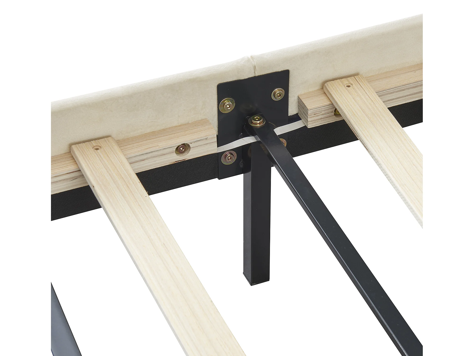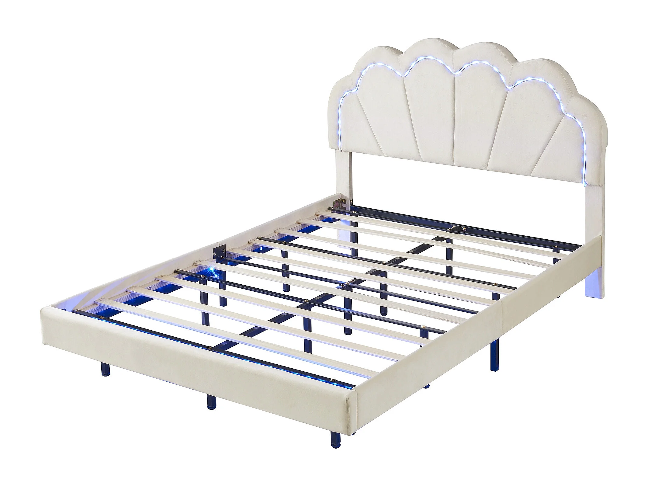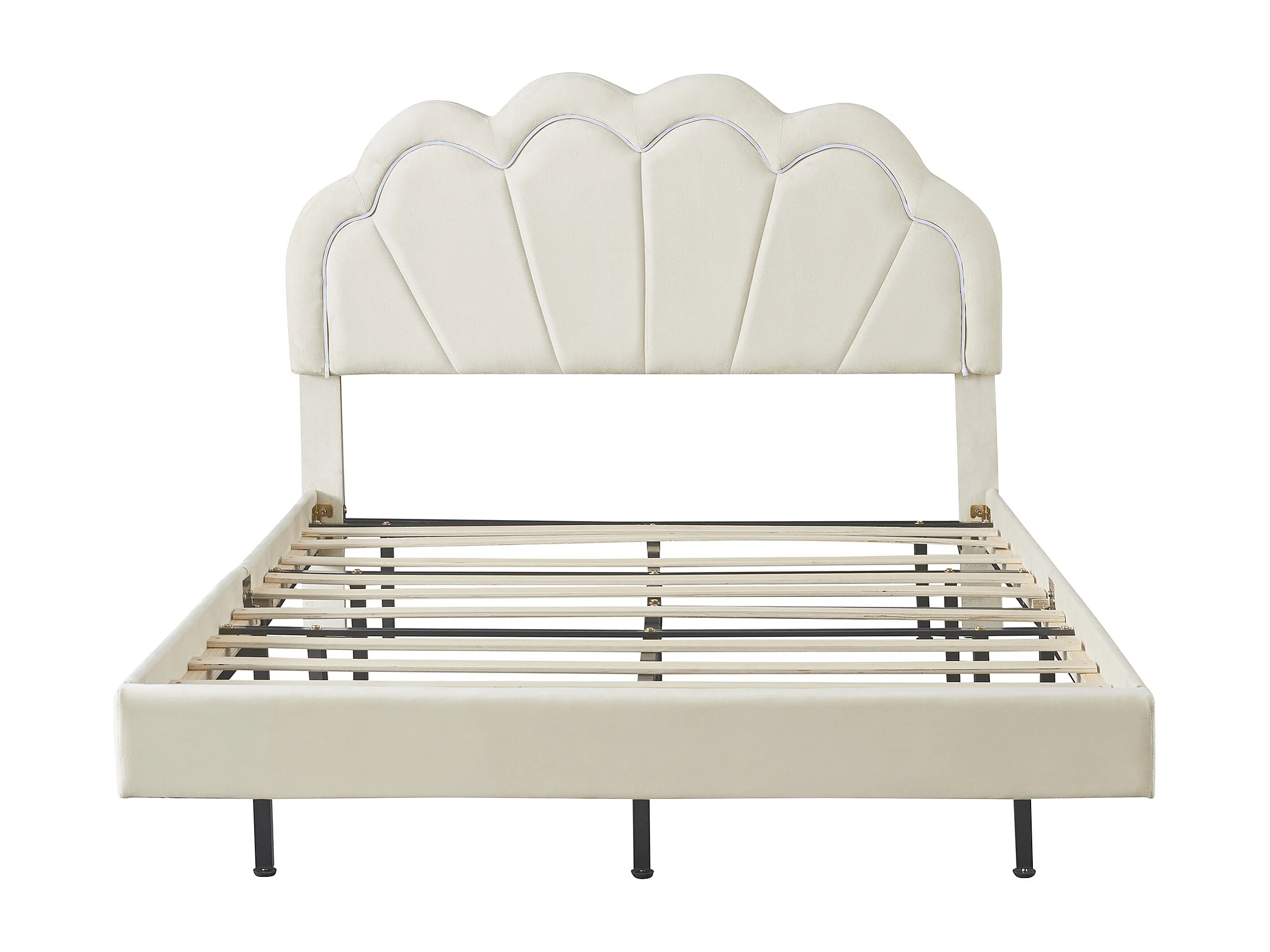 Samtgepolstertes Bett mit LED – 140 x 200 cm – Beige