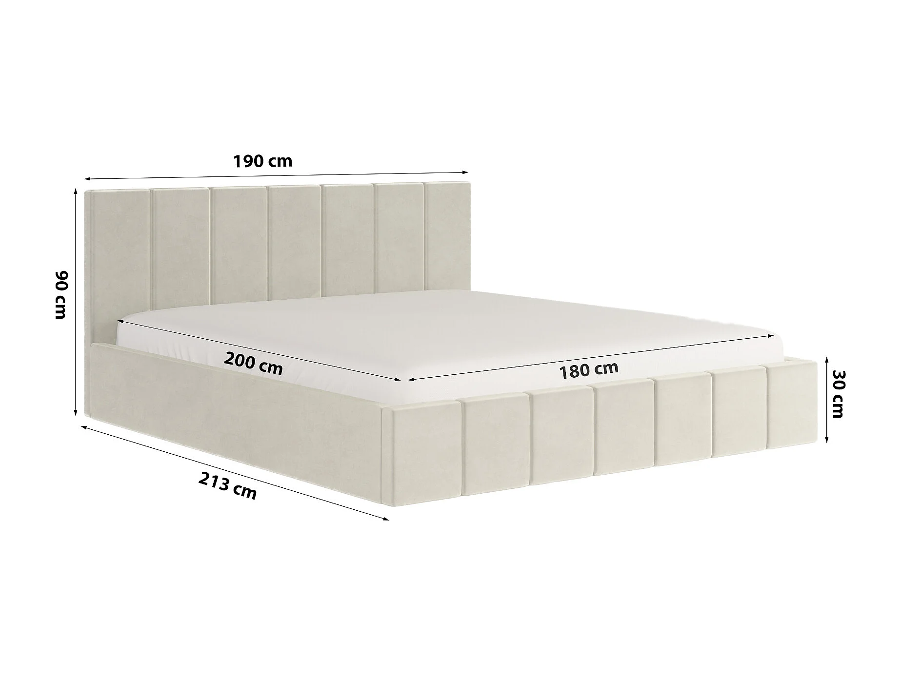 POLSTERBETT aus Velvet Sandvika Matratze Creme 180x200 cm