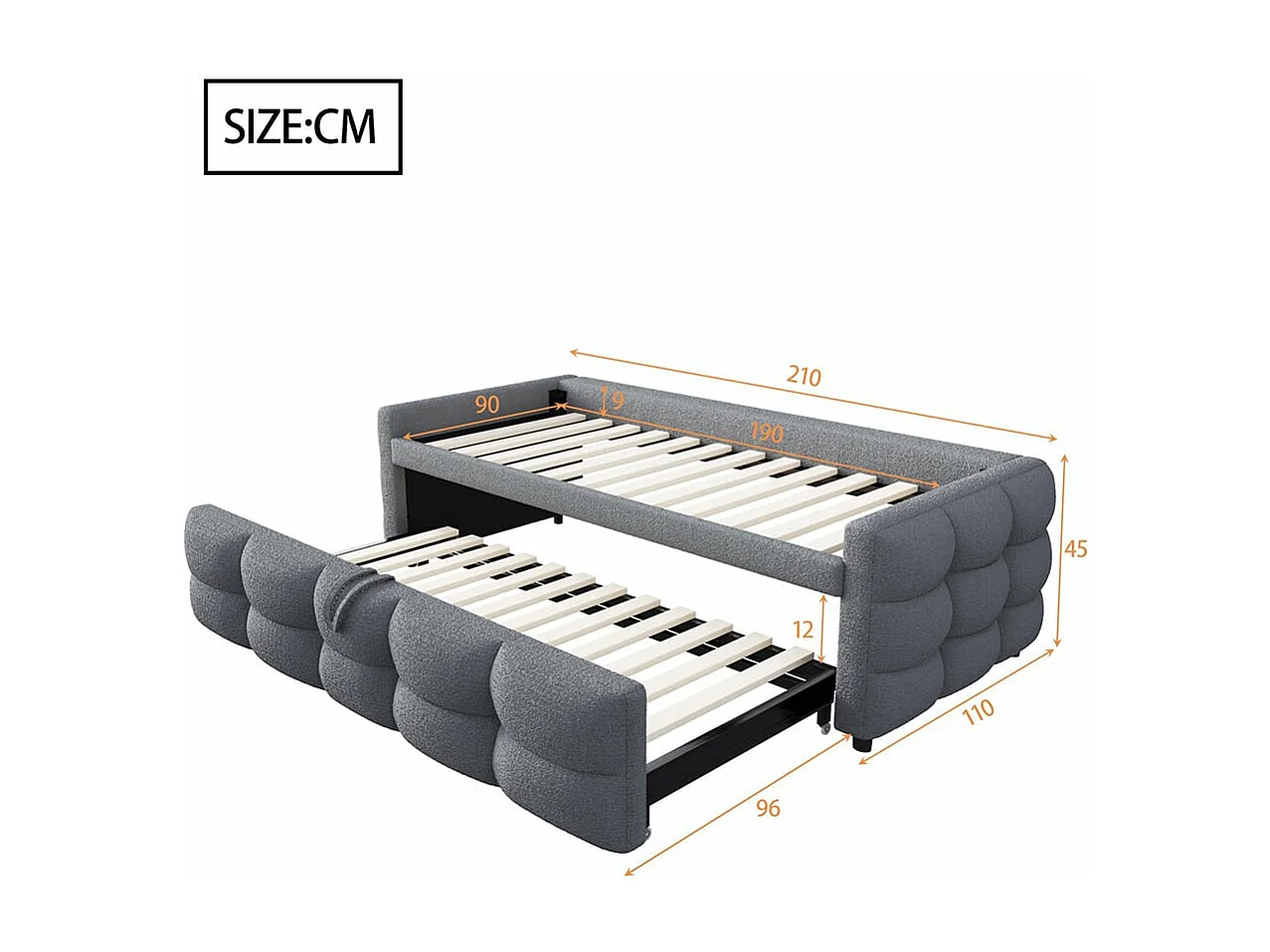 Polsterbett, ausziehbares Schlafsofa, 90/180*190 cm, Futonbett, Teddy-Samtstoff, Doppelbett mit Lattenrost, Multifunktionsbett, grau
