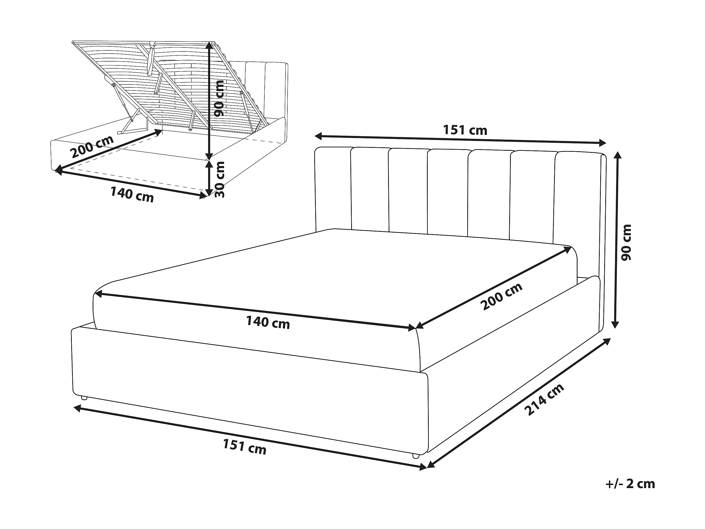 Elegantes Bett Polsterbezug mit Bettkasten hochklappbar beige 140 x 200 cm Dreux