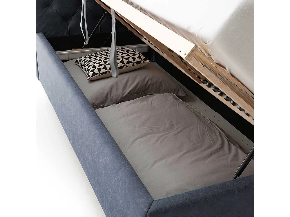 Polsterbett Blaugrau mit Microfaser Bezug Bettkasten