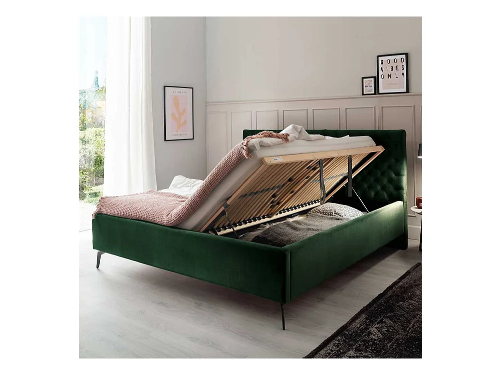 Polsterbett Dunkelgrün Samt mit Bettkasten 50 cm Einstiegshöhe
