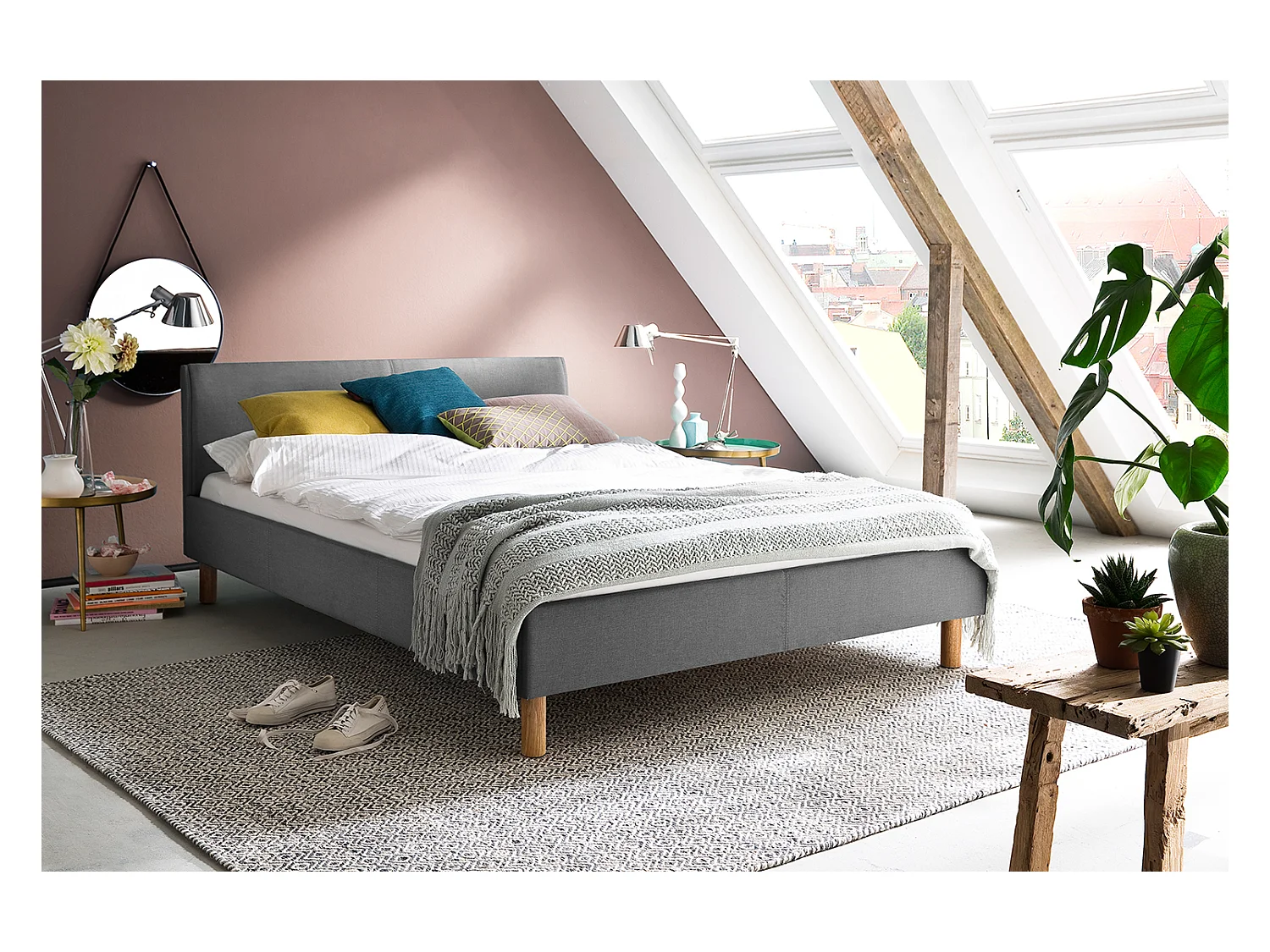 Polsterbett - Grau Webstoff - LEO