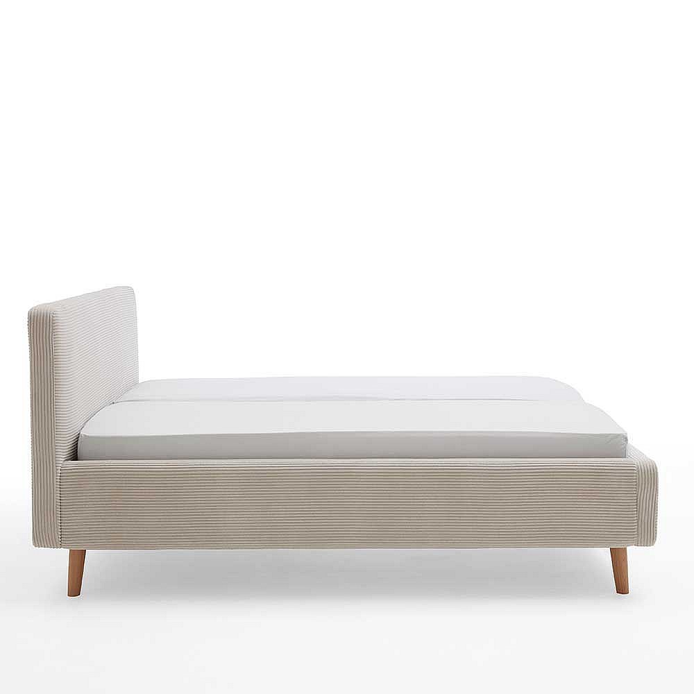 Polsterbett in Beige mit Cordbezug Vierfußgestell aus Holz