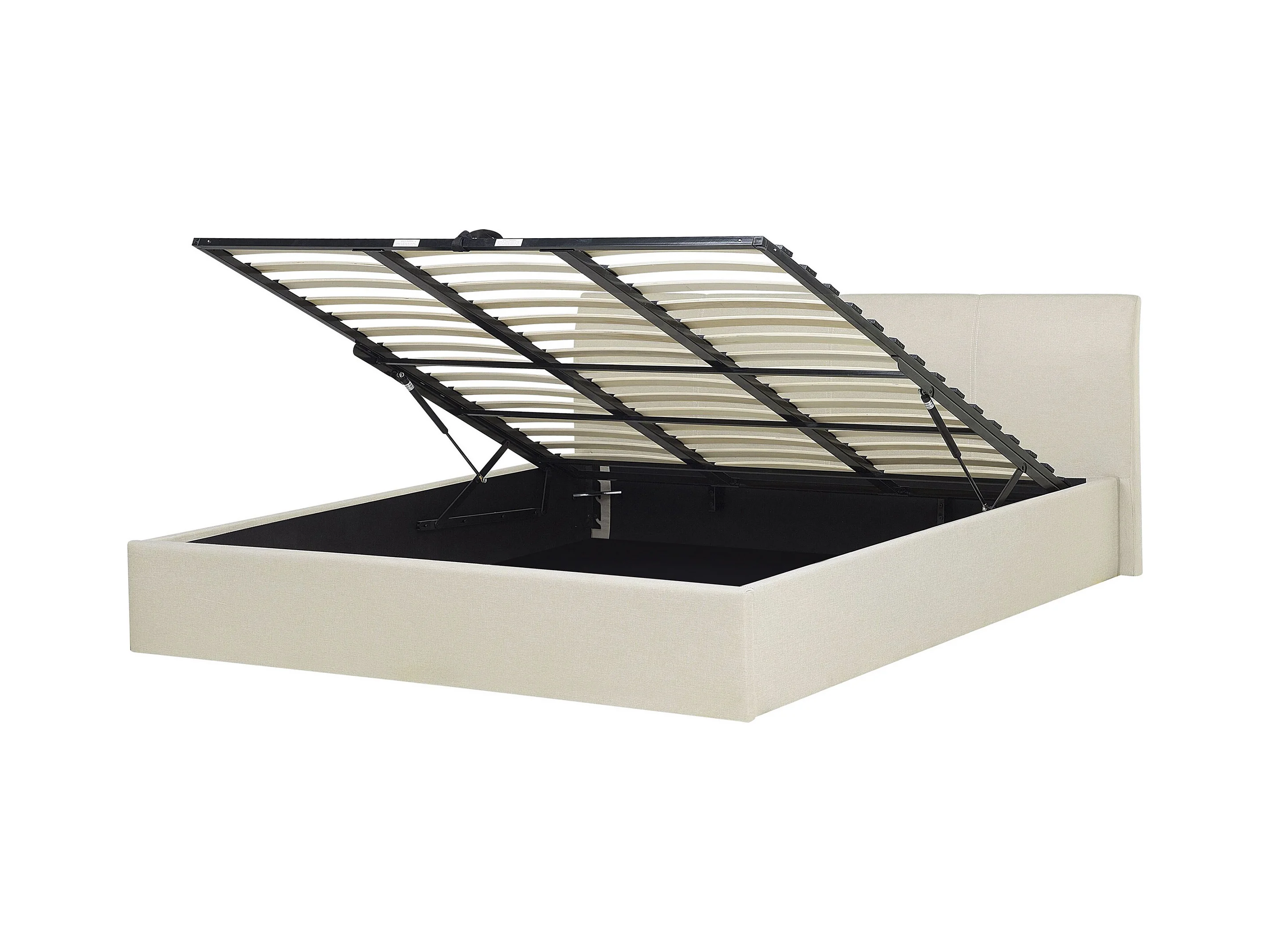 Polsterbett Leinenoptik beige mit Lattenrost 180x200 cm Bettkasten modern Orbey