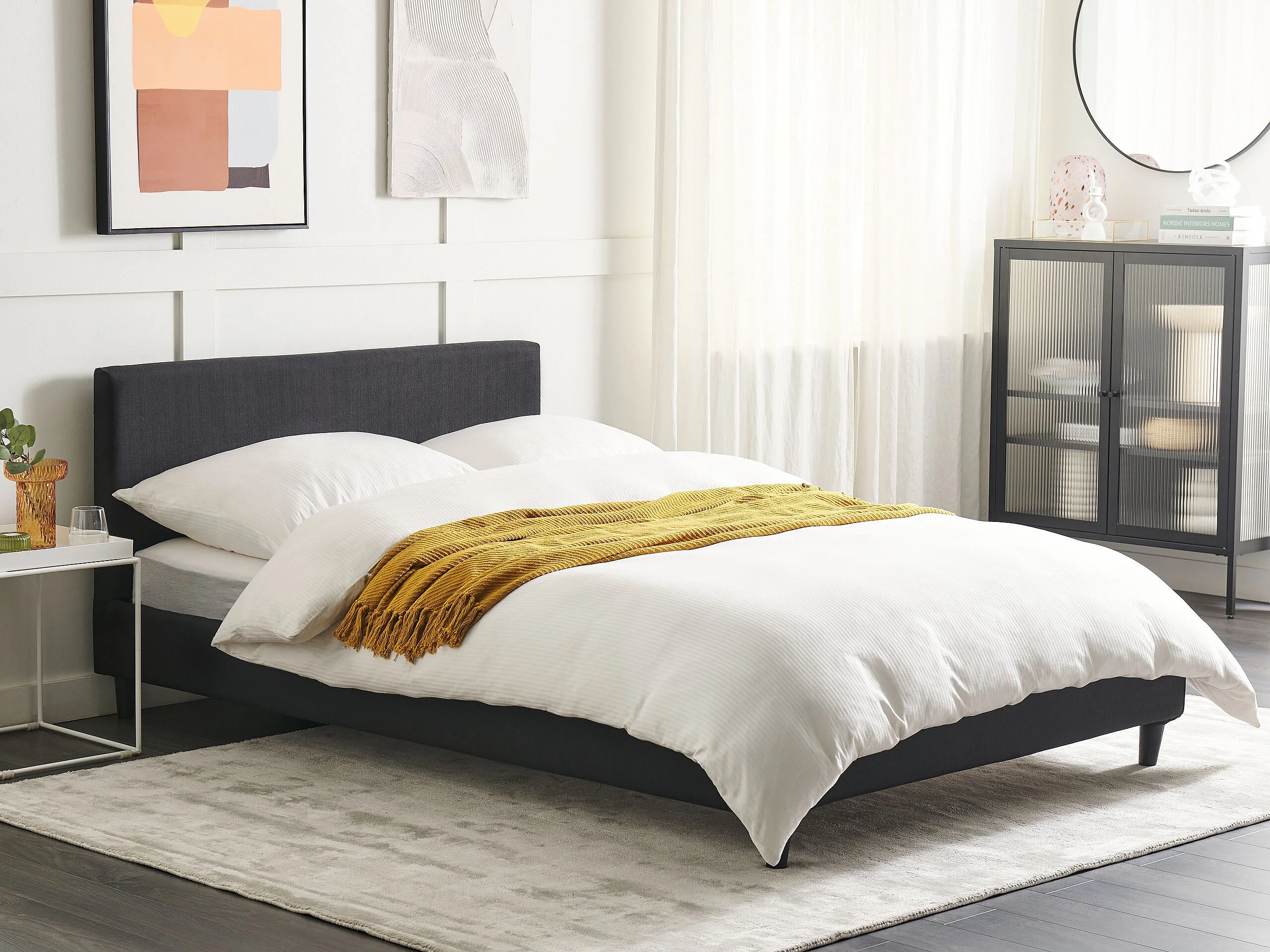 Modernes Doppelbett abnehmbarer Bettrahmenbezug Lattenrost 140 x 200 cm Stoff schwarz Leinenoptik Fitou