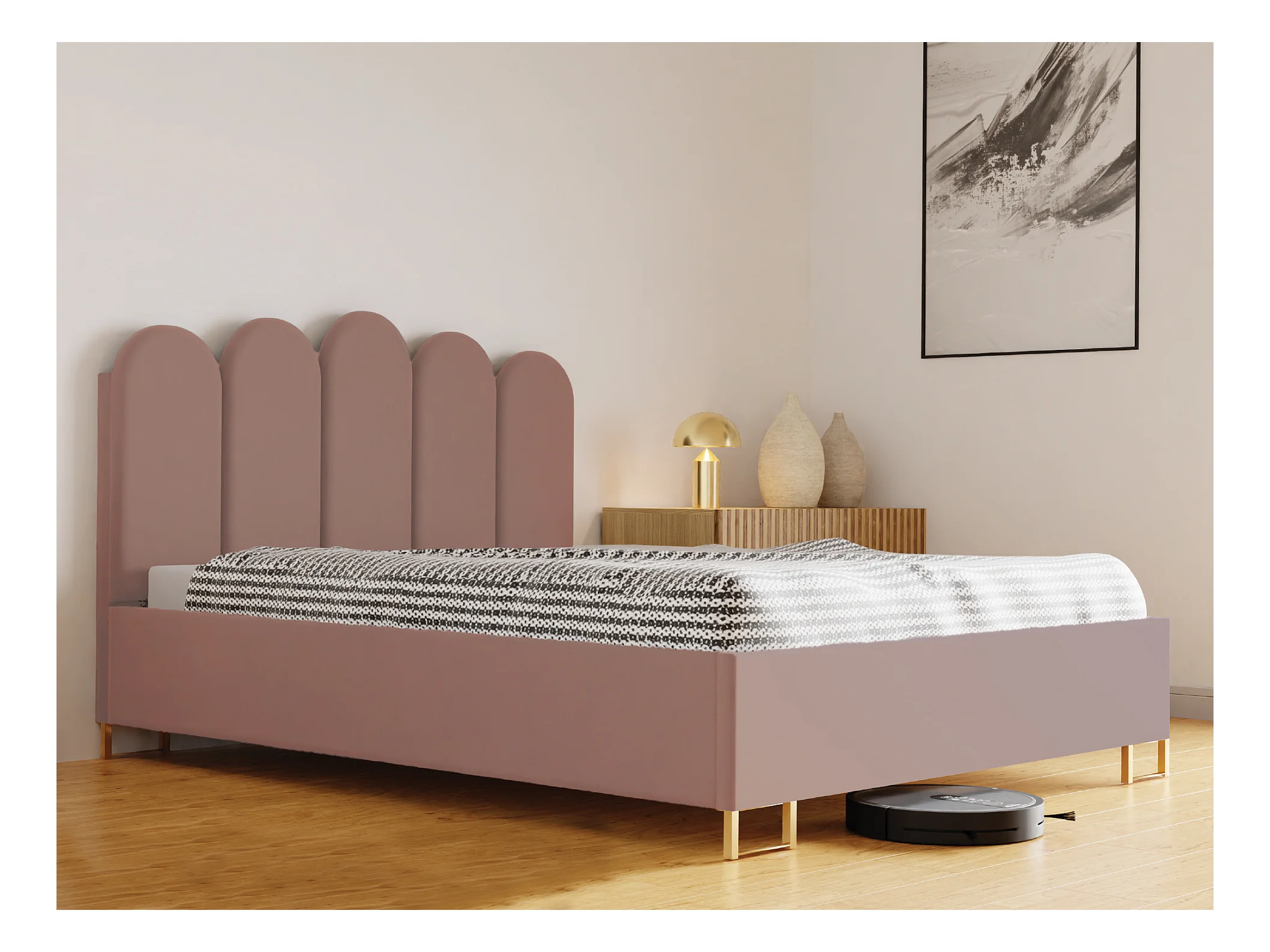 Polsterbett MALAGA mit gepolstertem Kopfteil, MONOLITH-Stoff, Bettkasten mit Gasdruckfeder, Betthöhe 39 cm, 200×200 cm, Puderrosa