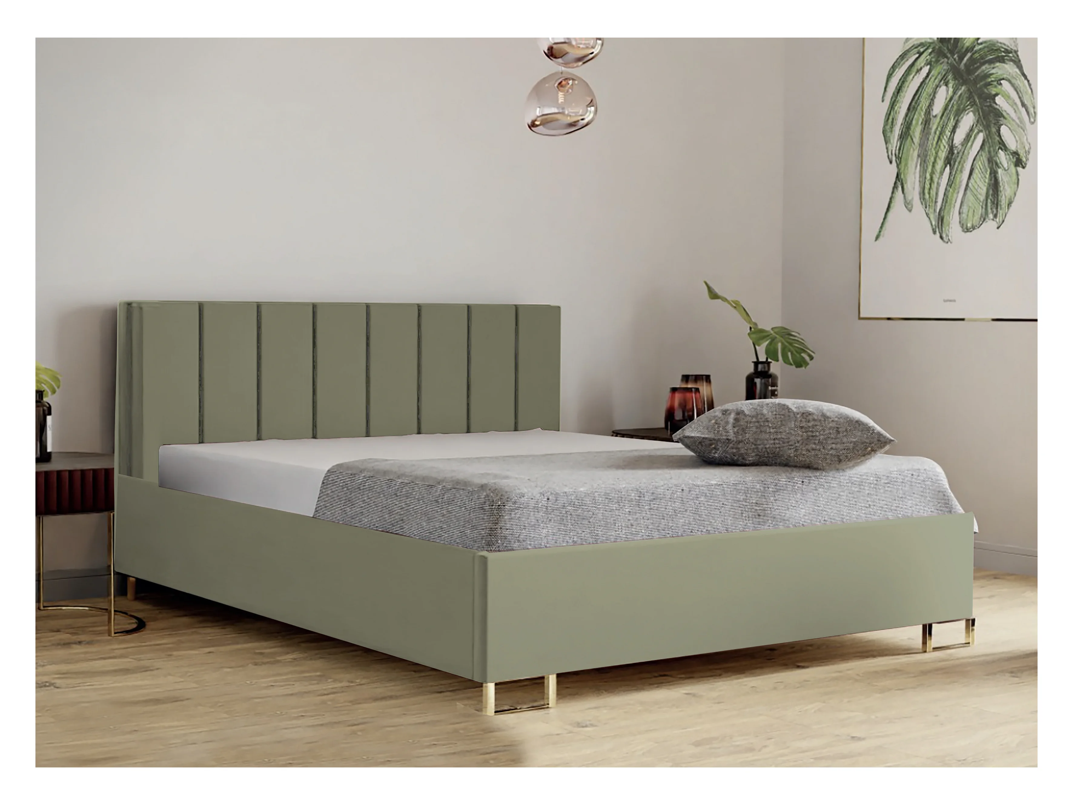 Polsterbett MALIBU 120x200 Cappuccino, MONOLITH-Stoff, gepolstertes Kopfteil, Bettkasten mit Gasdruckfeder, 39 cm hoch, Limonengrün