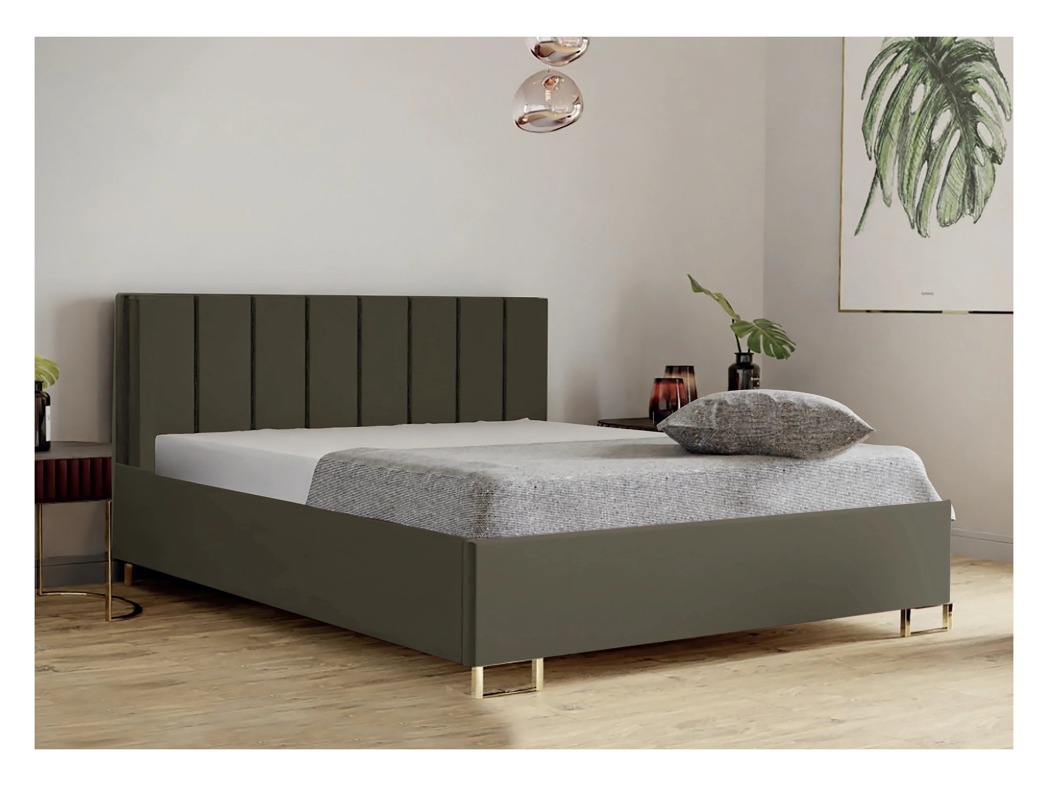 Polsterbett MALIBU 160x200 Orange, MONOLITH-Stoff, gepolstertes Kopfteil, Bettkasten mit Gasdruckfeder, 39 cm hoch, Olivgrün