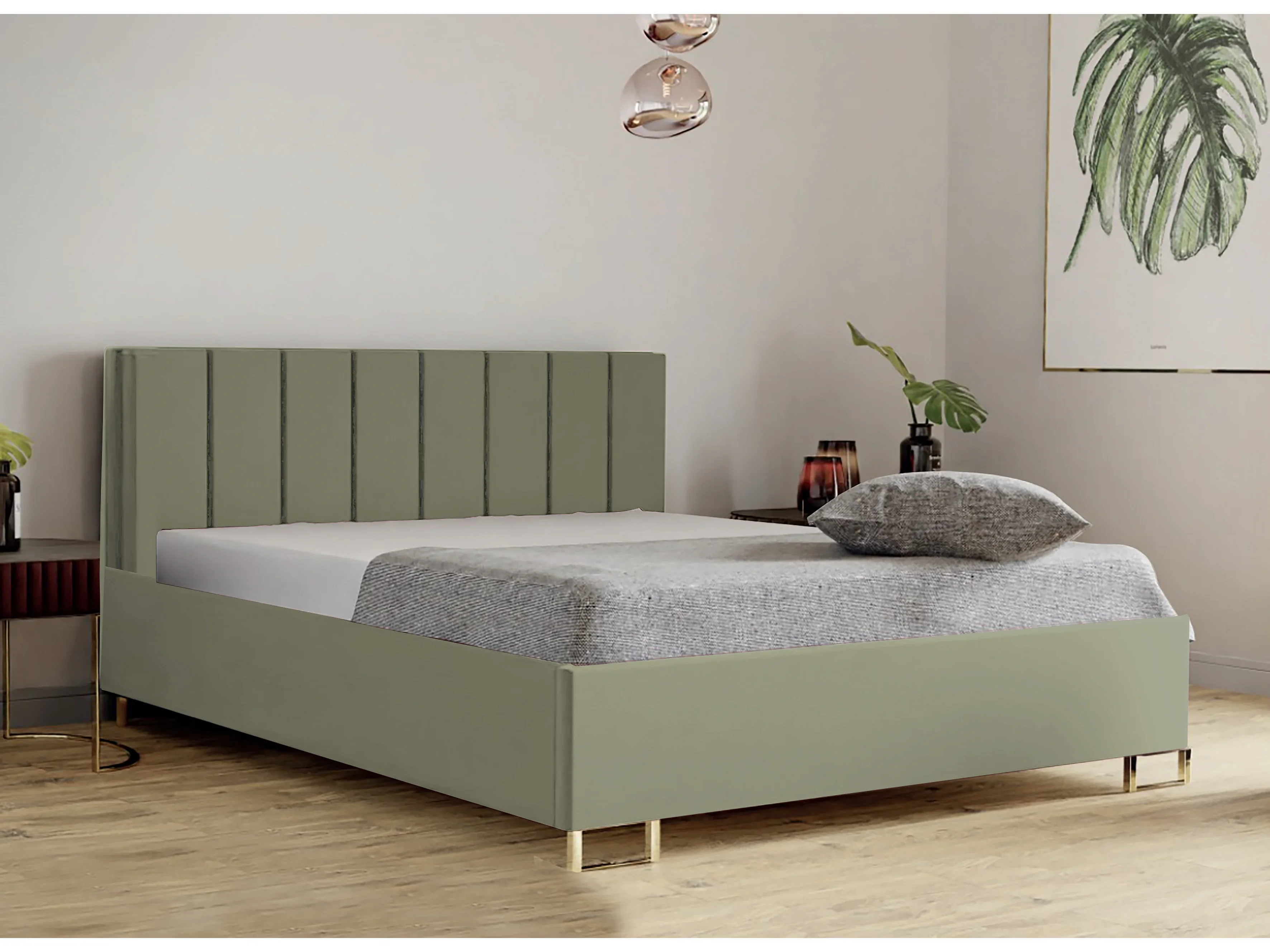 Polsterbett MALIBU 200x200 Cappuccino, MONOLITH-Stoff, gepolstertes Kopfteil, Bettkasten mit Gasdruckfeder, 39 cm hoch, Limonengrün