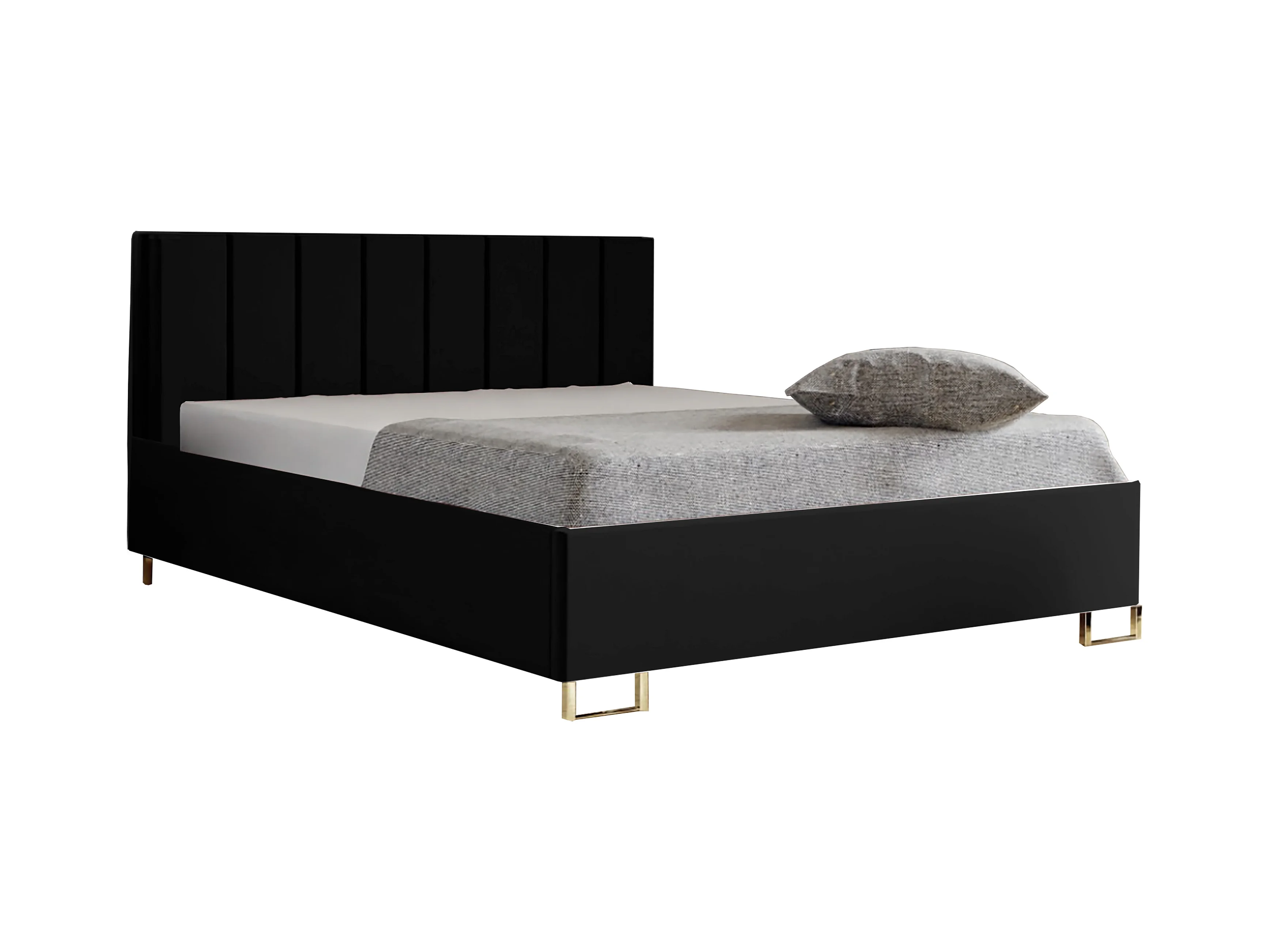 Polsterbett MALIBU 200x200 Dunkelgrün, MONOLITH-Stoff, gepolstertes Kopfteil, Bettkasten mit Gasdruckfeder, 39 cm hoch, Schwarz