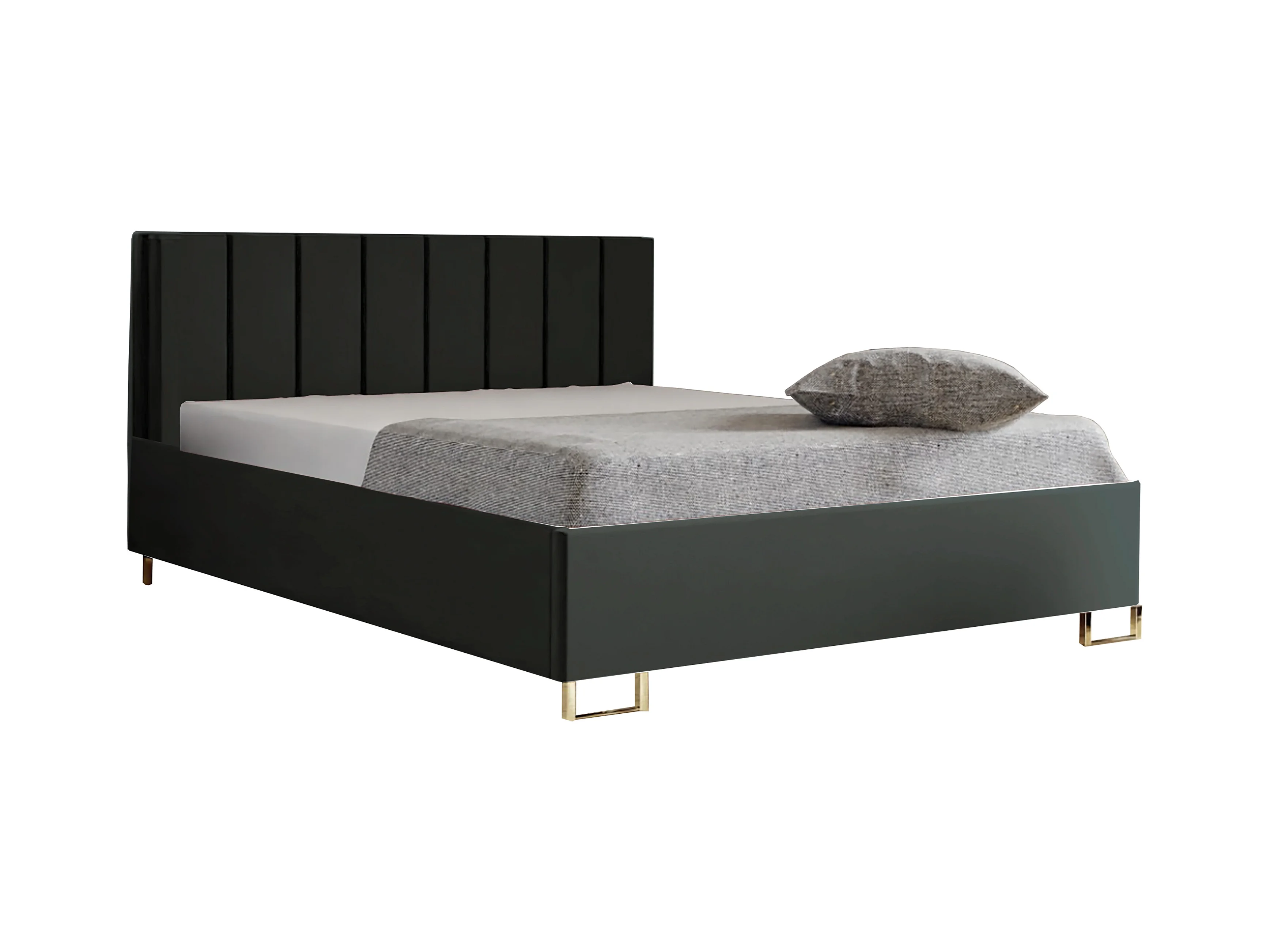 Polsterbett MALIBU 200x200 Esche, MONOLITH-Stoff, gepolstertes Kopfteil, Bettkasten mit Gasdruckfeder, 39 cm hoch, Dunkelgrün