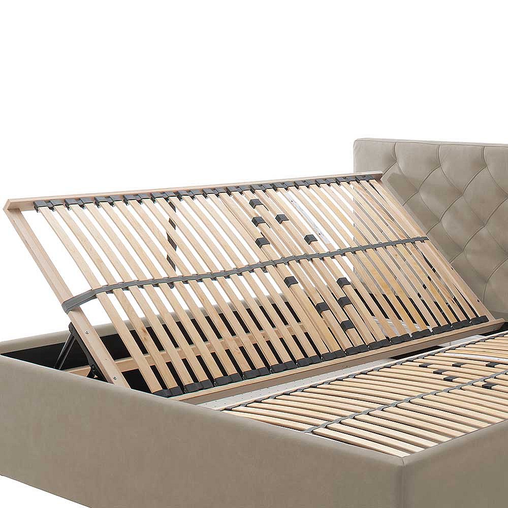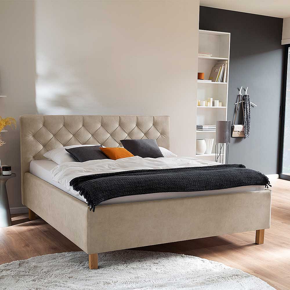 Polsterbett Microfaserbezug in Beige Vierfu�gestell aus Holz