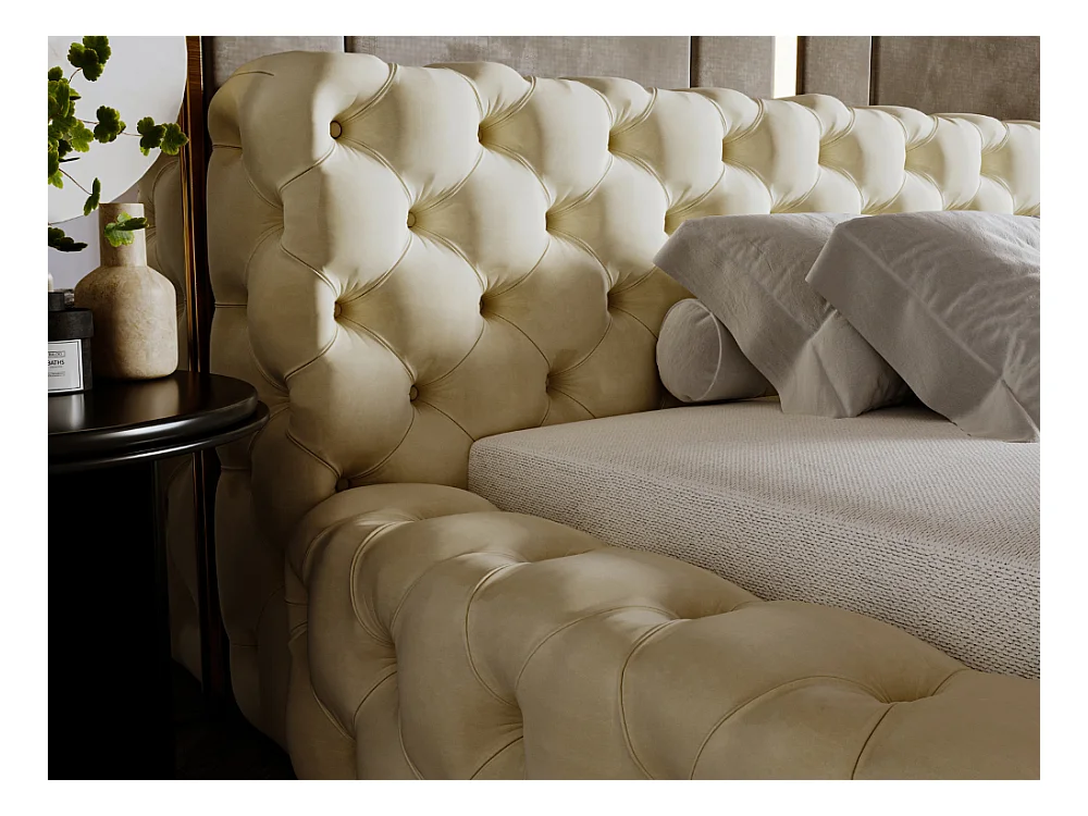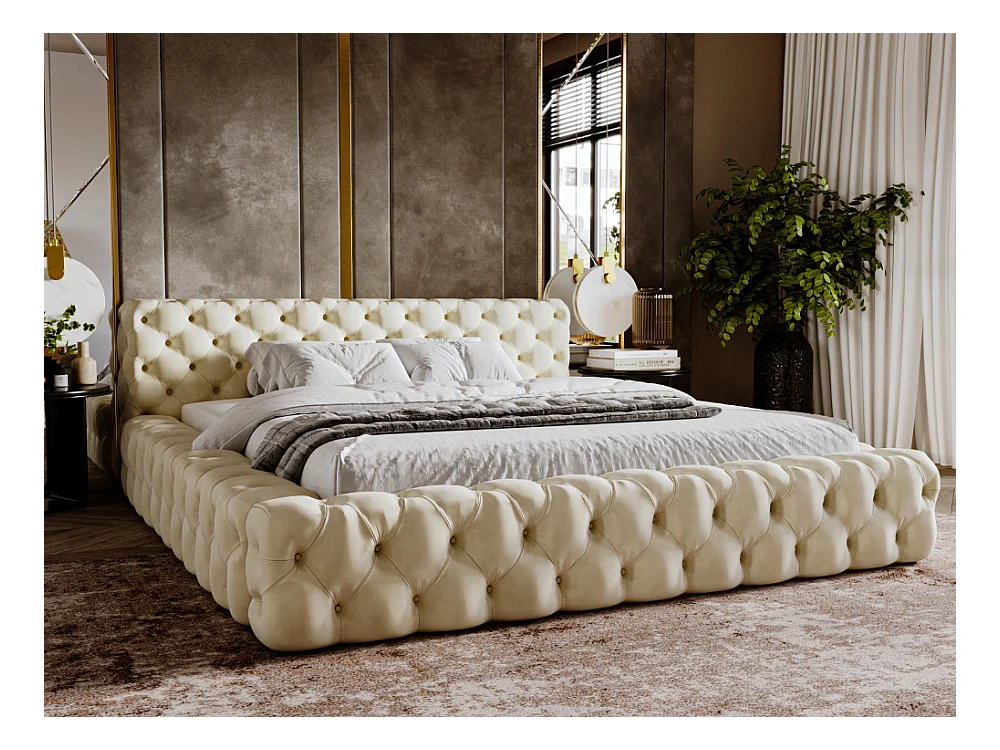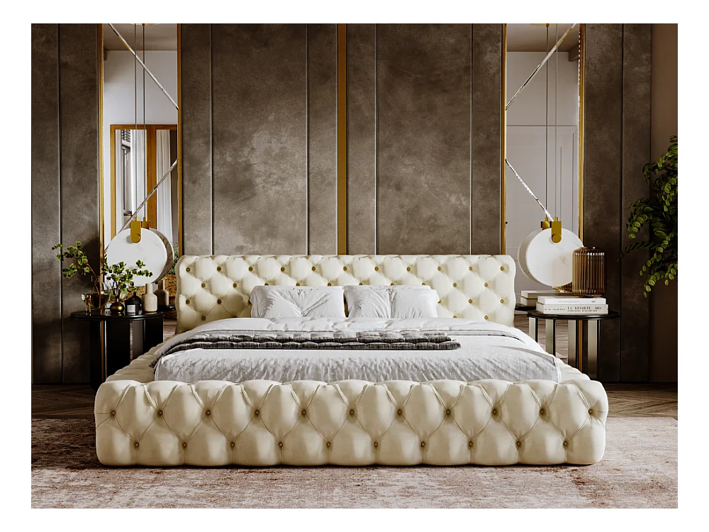 Polsterbett mit Bettkasten - 120 x 200 - Samtstoff - Beige - Bett mit Lattenrost - ARMANI BIS