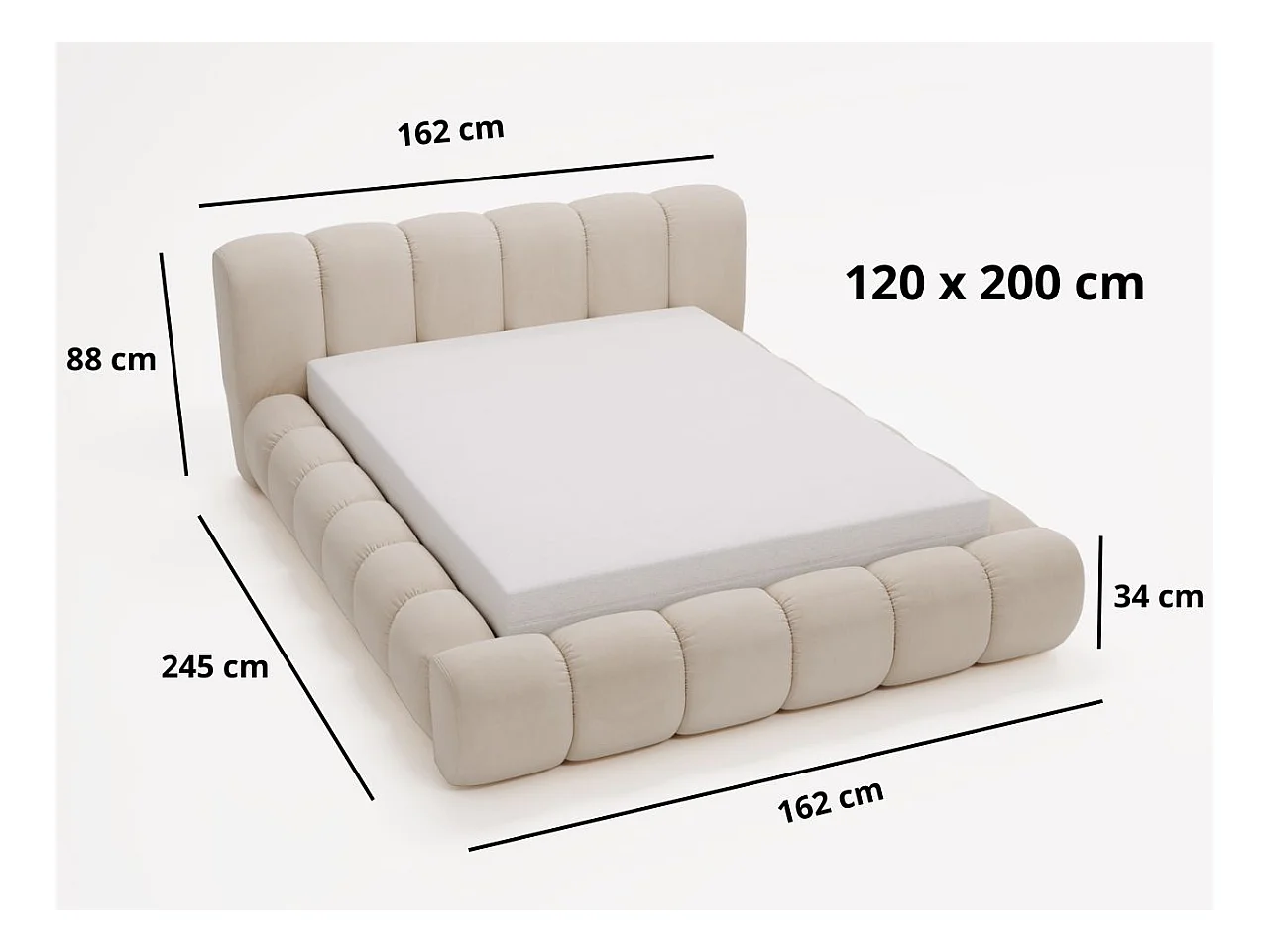 Polsterbett mit Bettkasten - 120 x 200 - Samtstoff - Hellgrau - Bett mit Lattenrost - DORIA