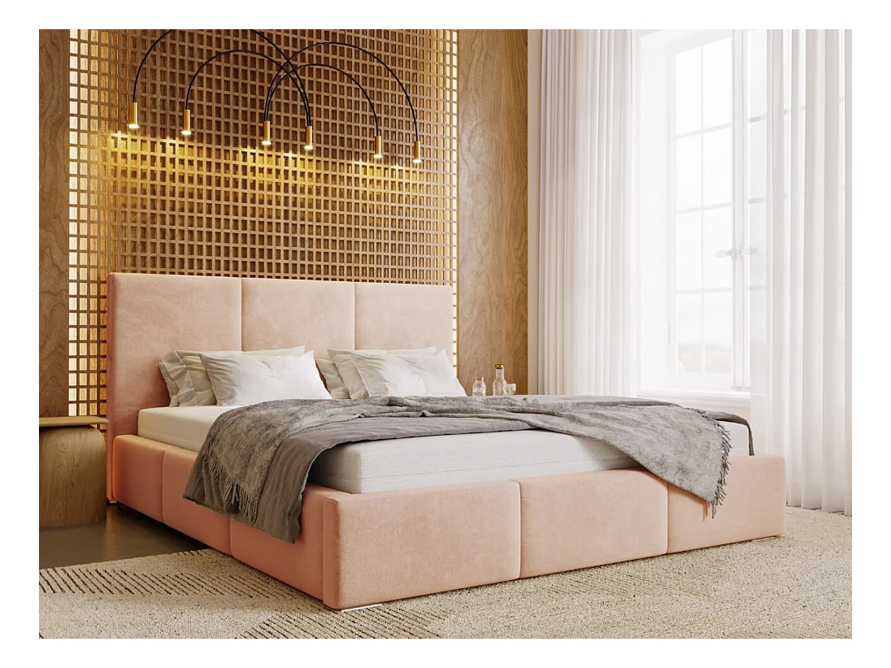Polsterbett mit Bettkasten - 120 x 200 - Samtstoff - Schmutziges Rosa - Bett mit Lattenrost - LINCOLN