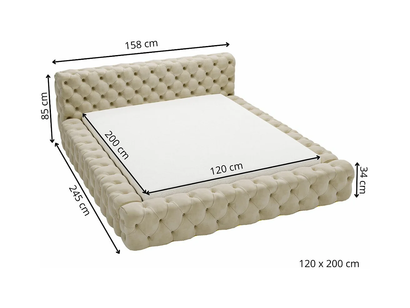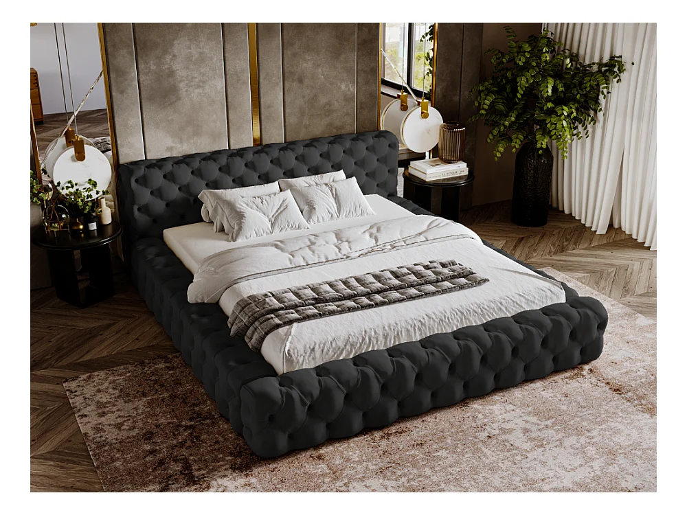 Polsterbett mit Bettkasten - 120 x 200 - Samtstoff - Schwarz - Bett mit Lattenrost - ARMANI BIS