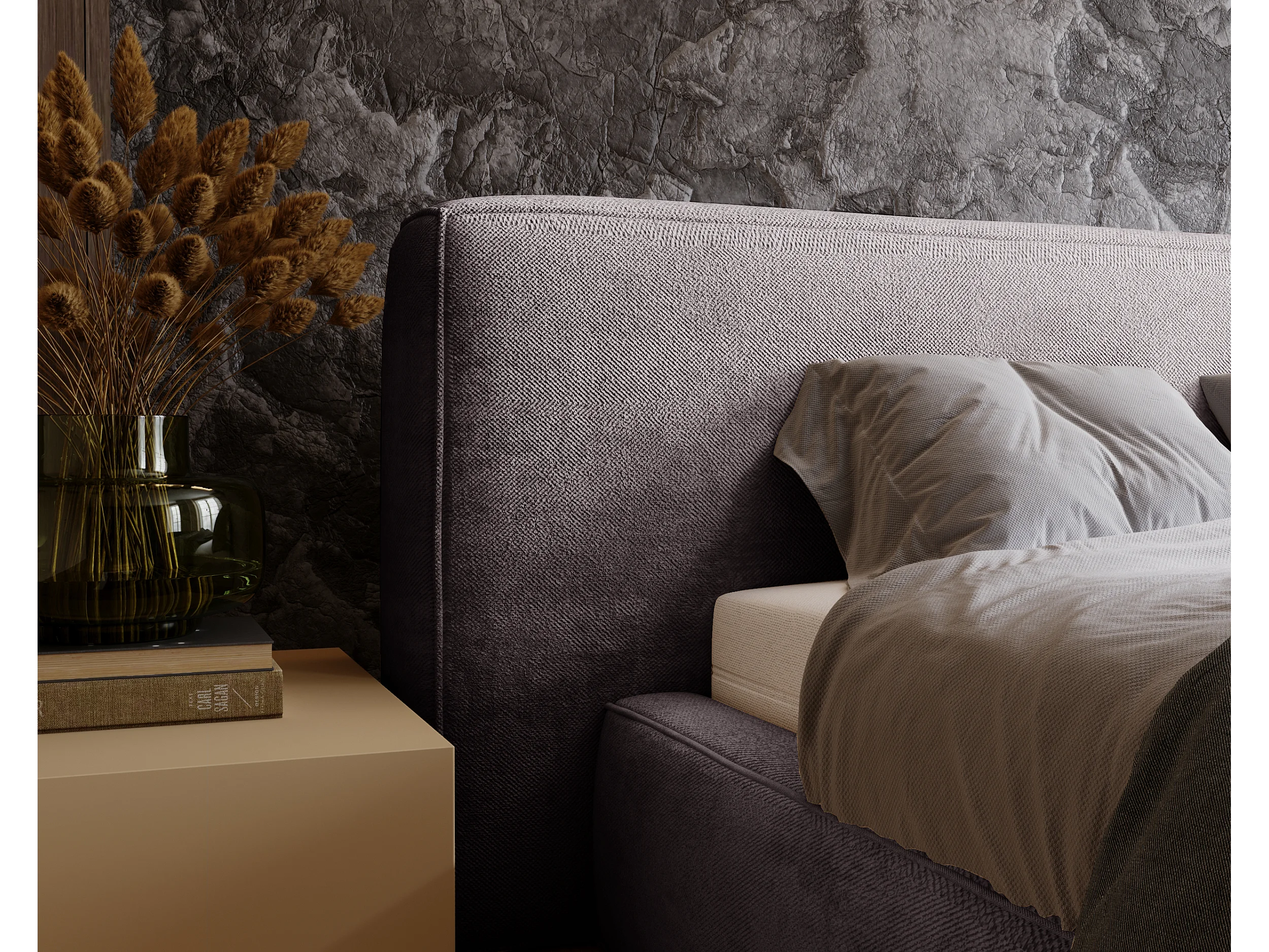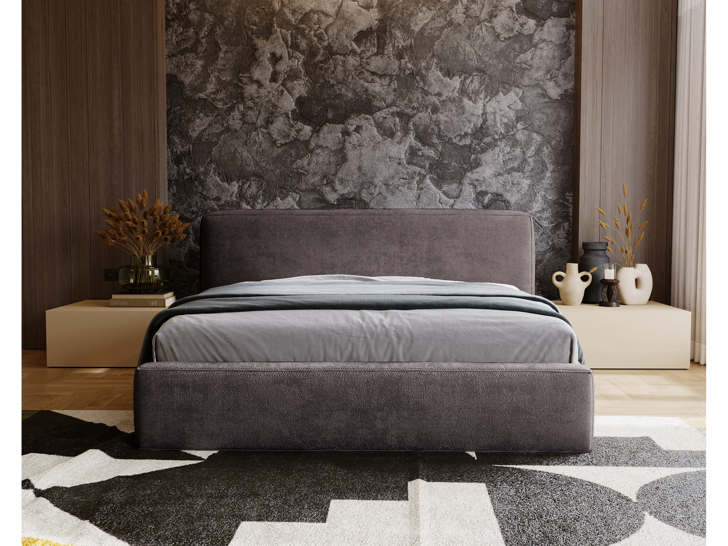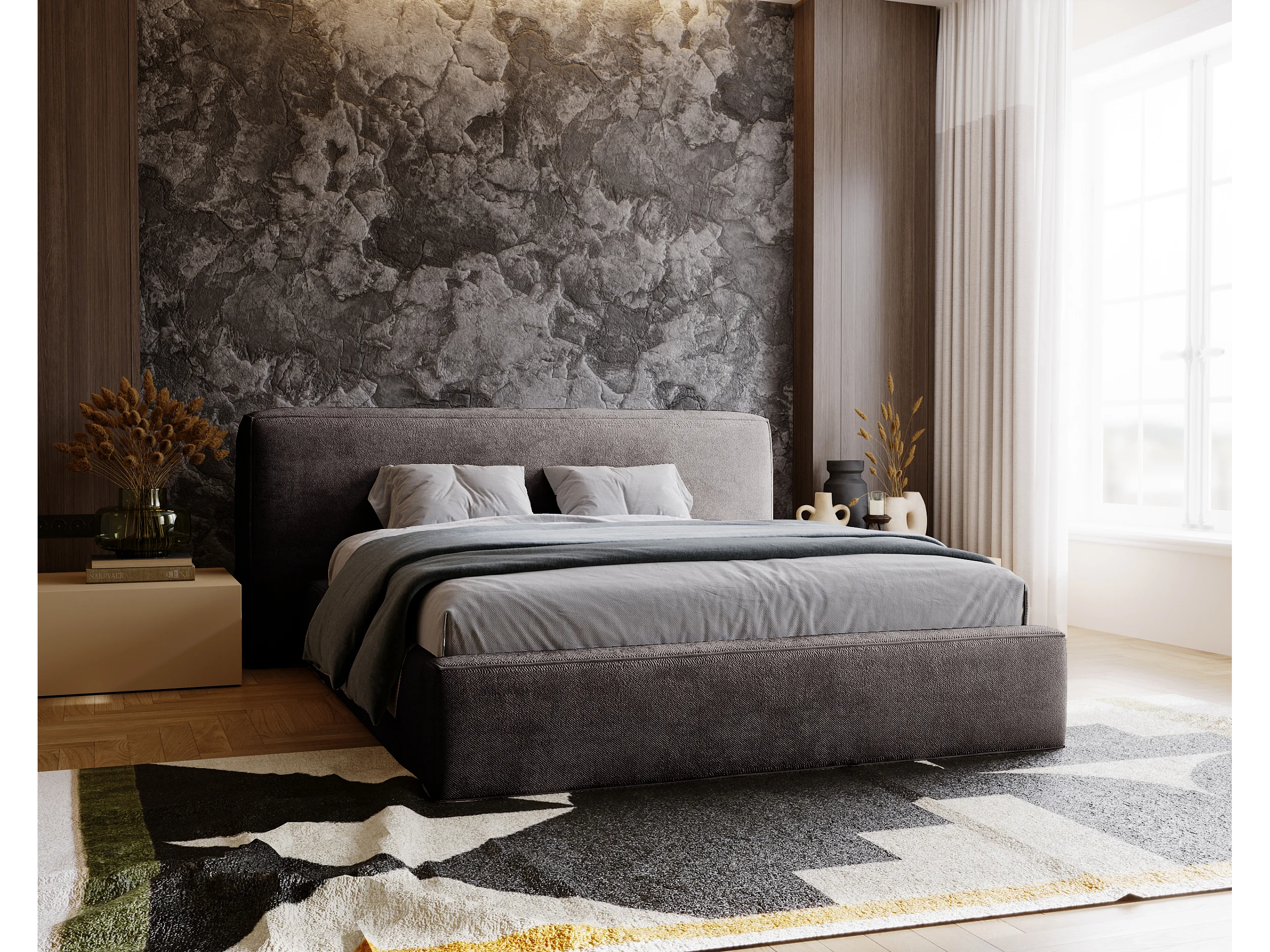 Polsterbett mit Bettkasten - 140 x 200 - Chenille-Stoff - Grau - Bett mit Lattenrost - MONZA