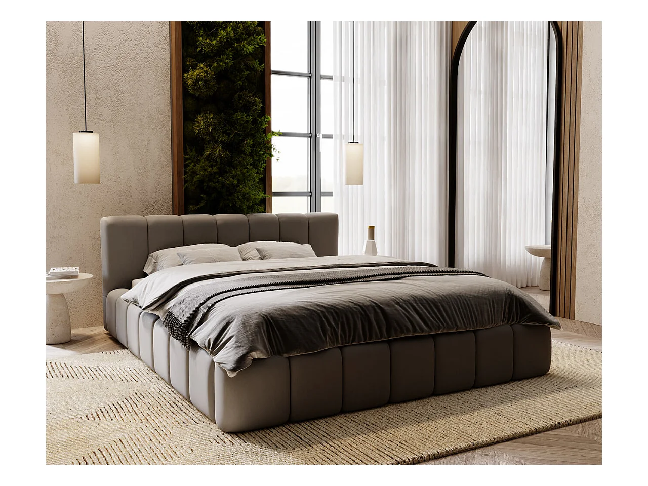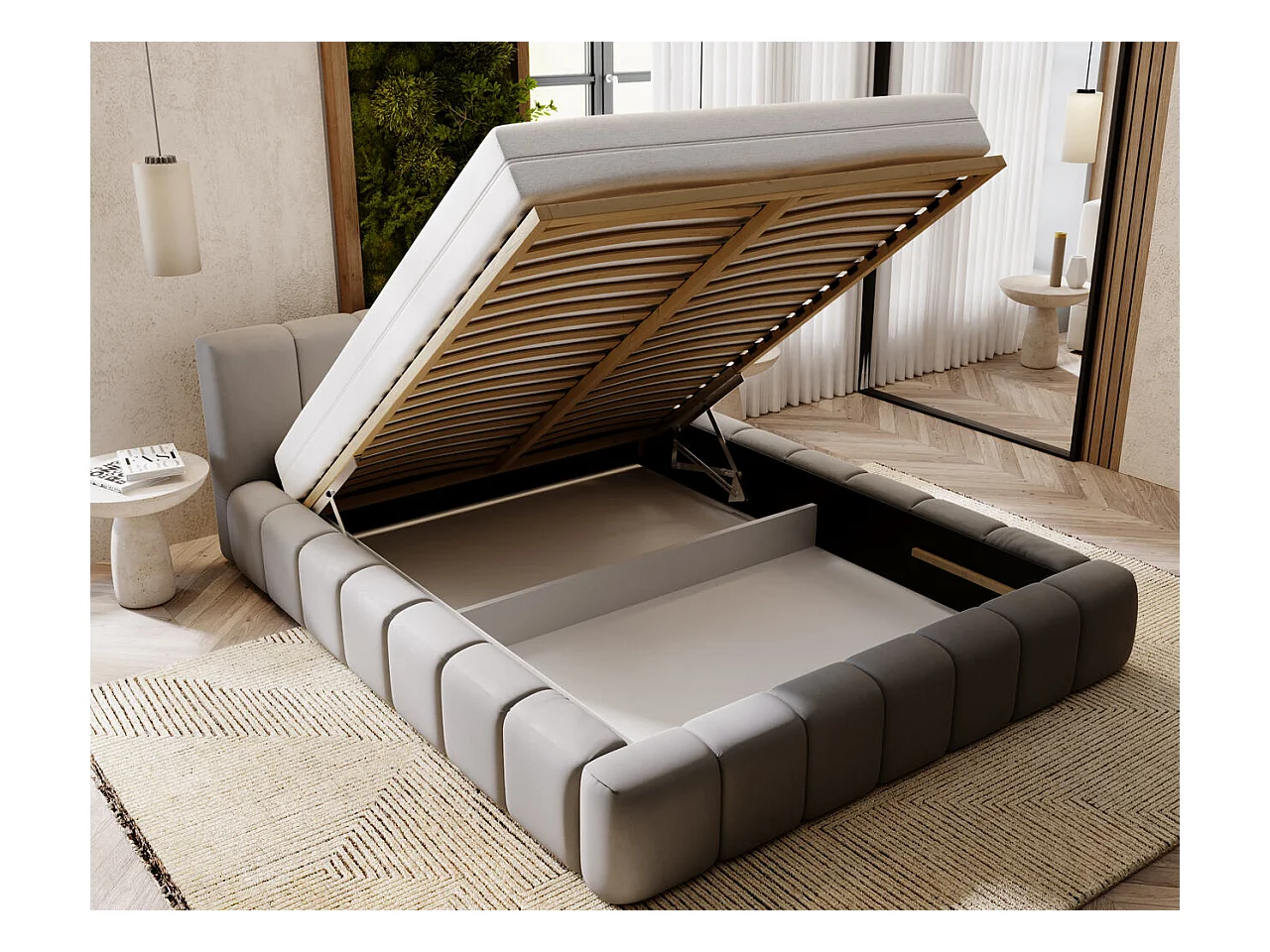 Polsterbett mit Bettkasten - 140 x 200 - Samtstoff - Grau - Bett mit Lattenrost - SPLIT