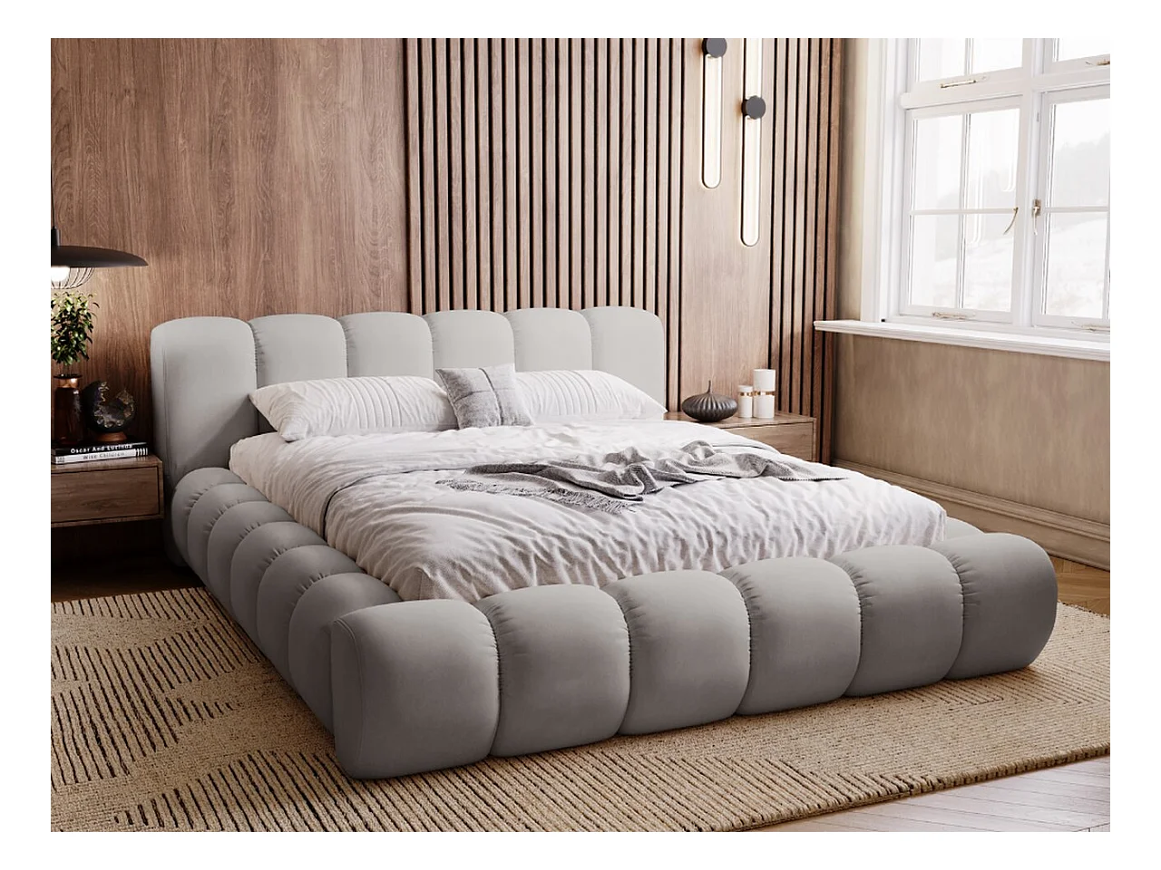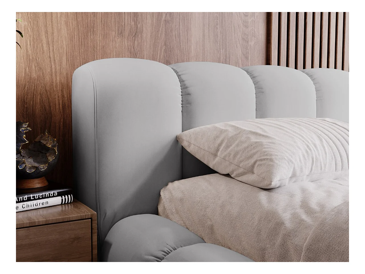 Polsterbett mit Bettkasten - 140 x 200 - Samtstoff - Hellgrau - Bett mit Lattenrost - DORIA
