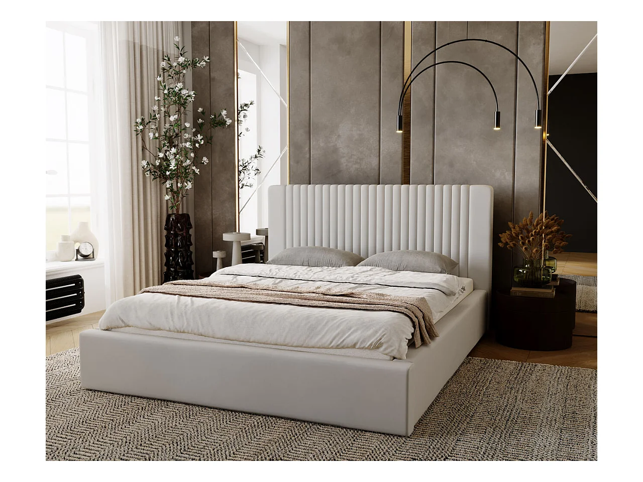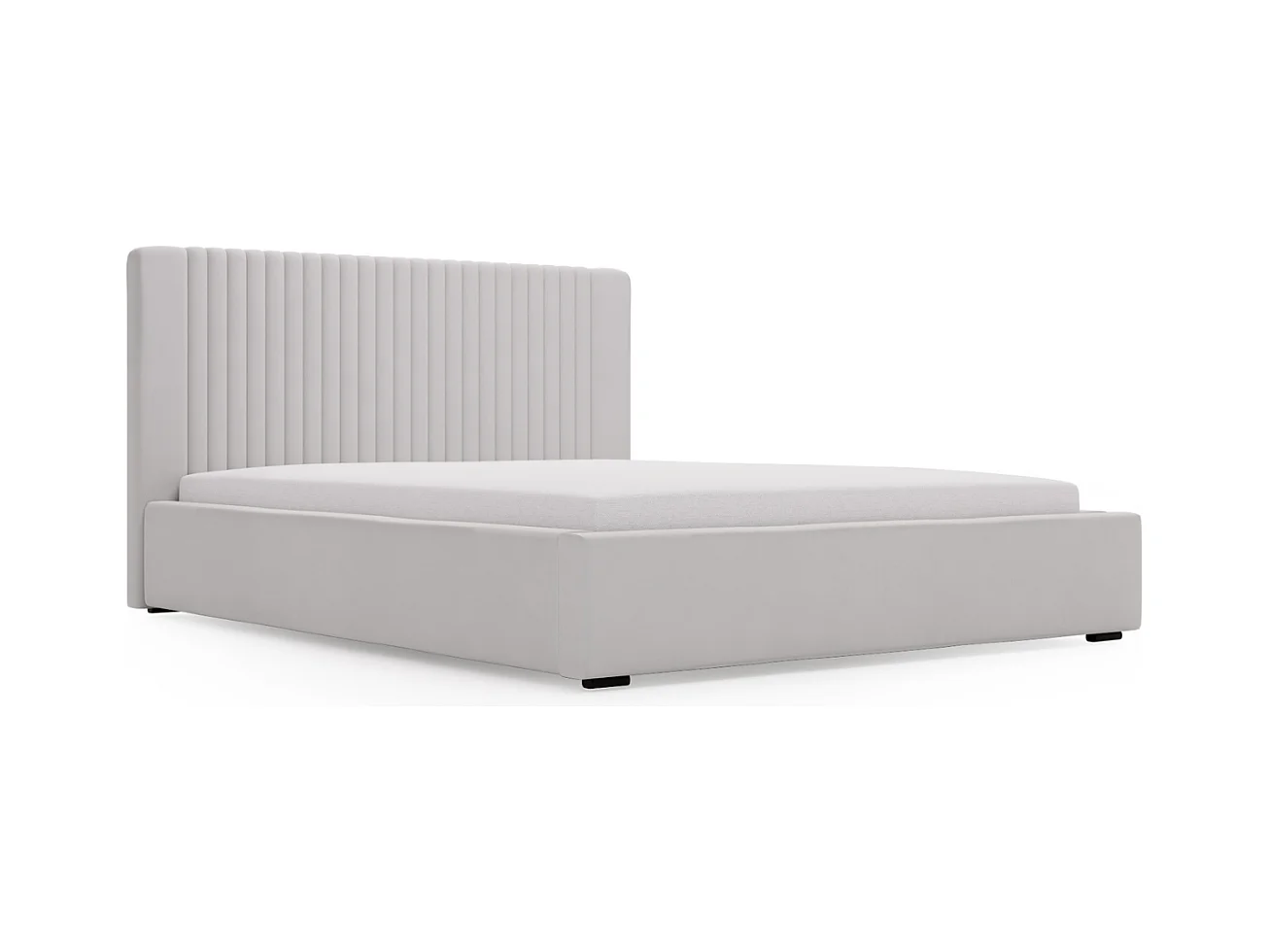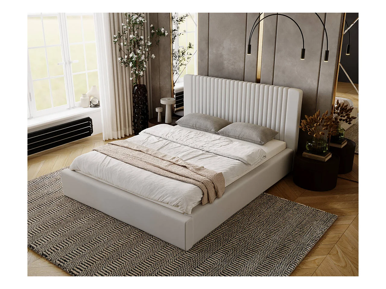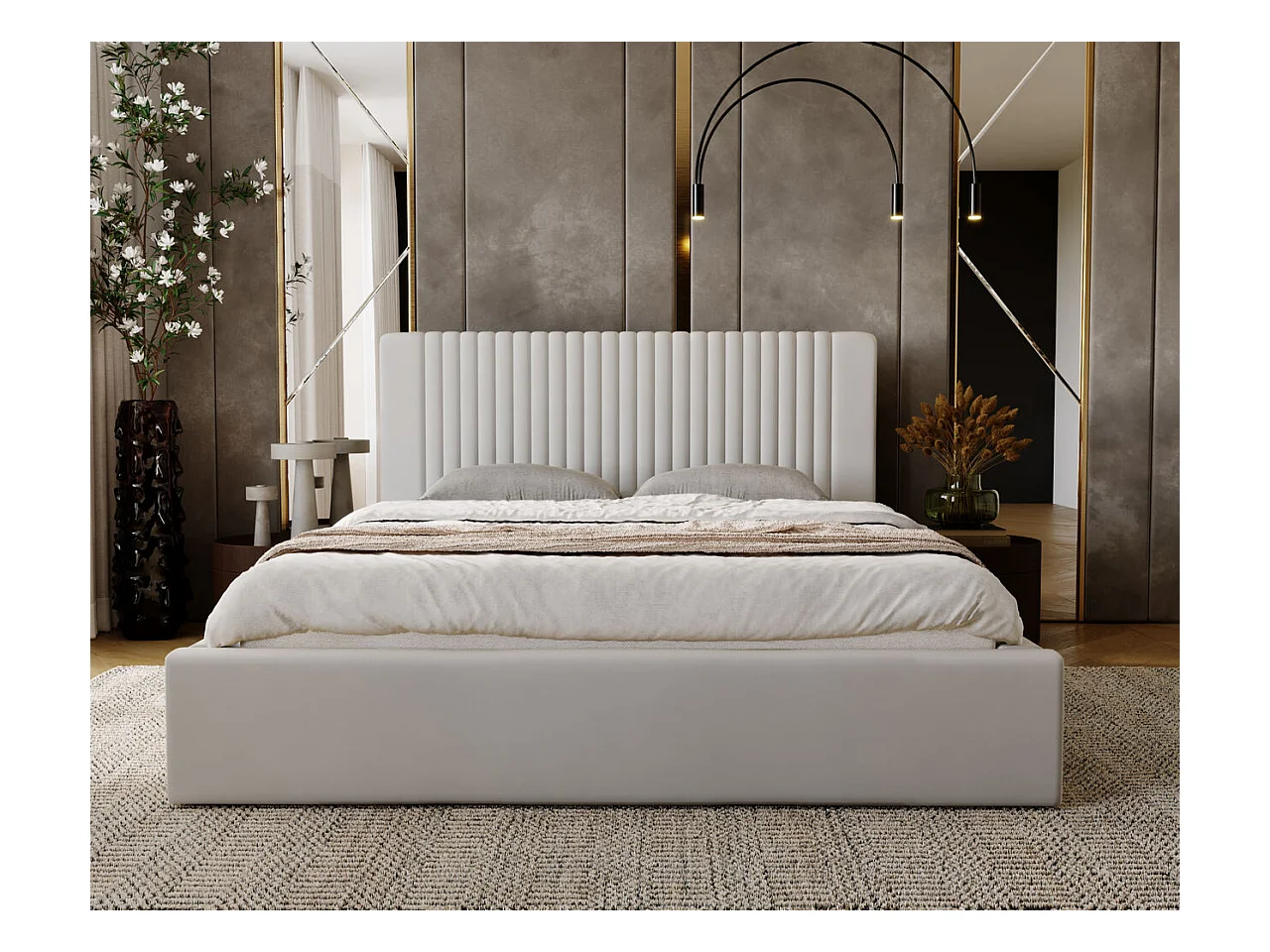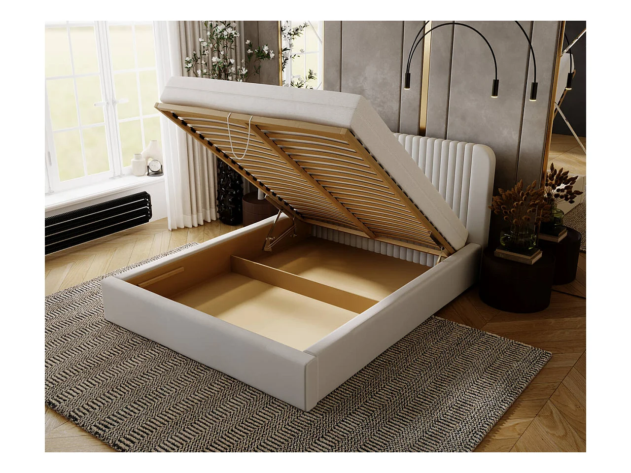 Polsterbett mit Bettkasten - 140 x 200 - Samtstoff - Hellgrau - Bett mit Lattenrost - MALMO