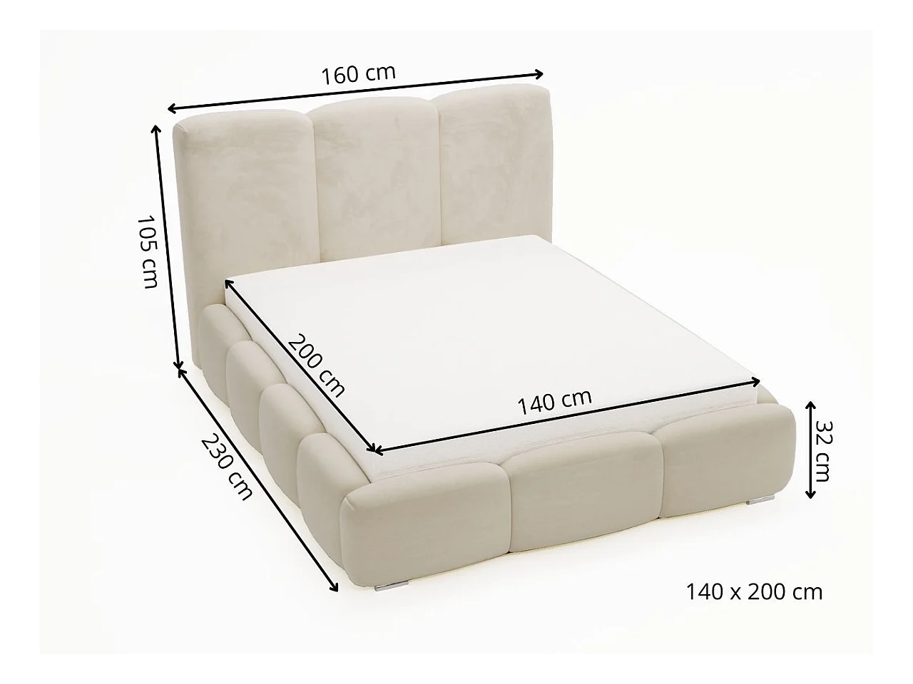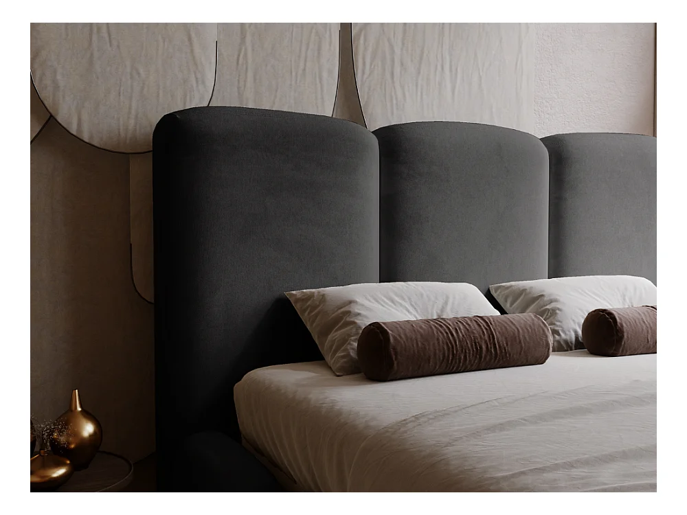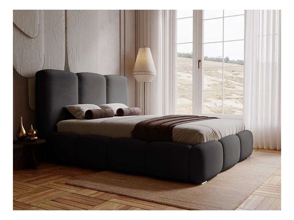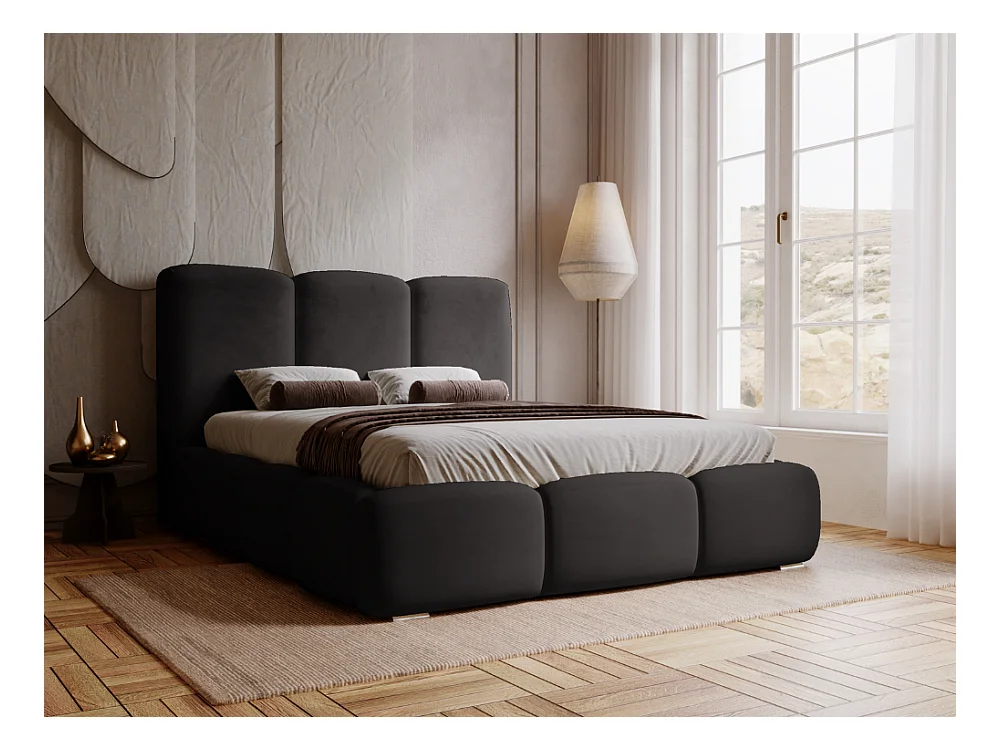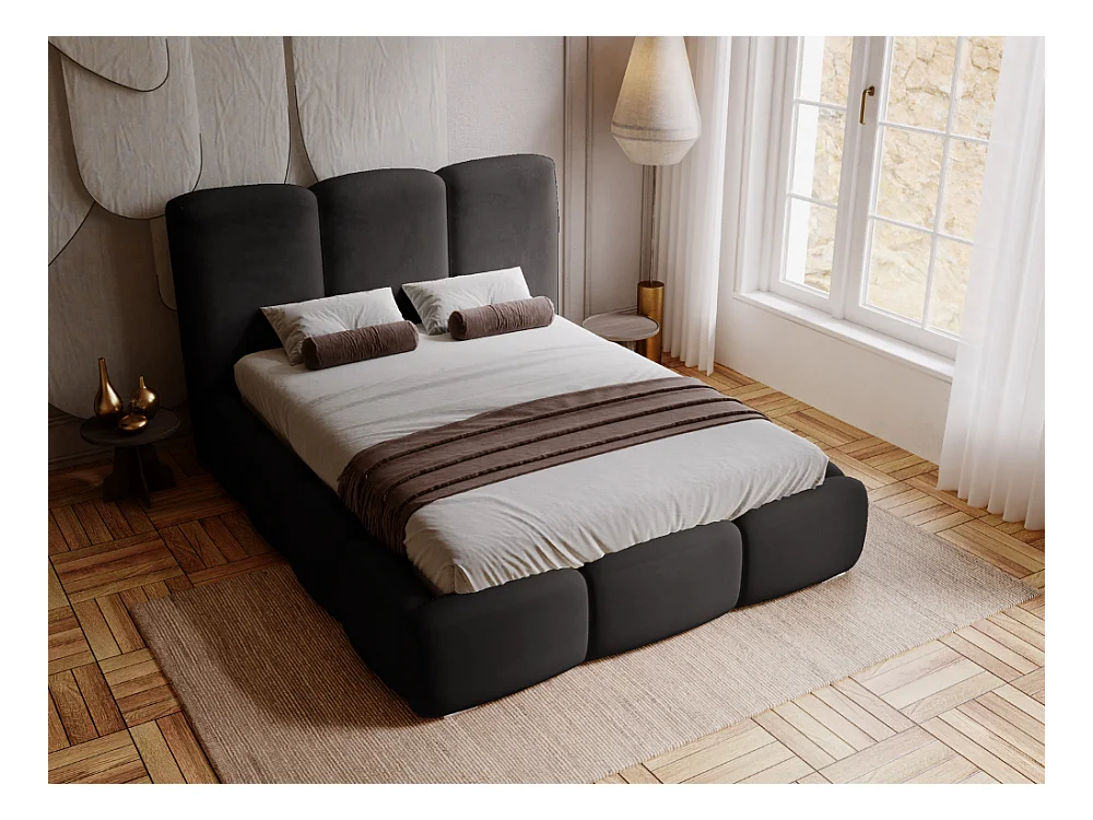 Polsterbett mit Bettkasten - 140 x 200 - Samtstoff - Schwarz - Bett mit Lattenrost - BUBBLE